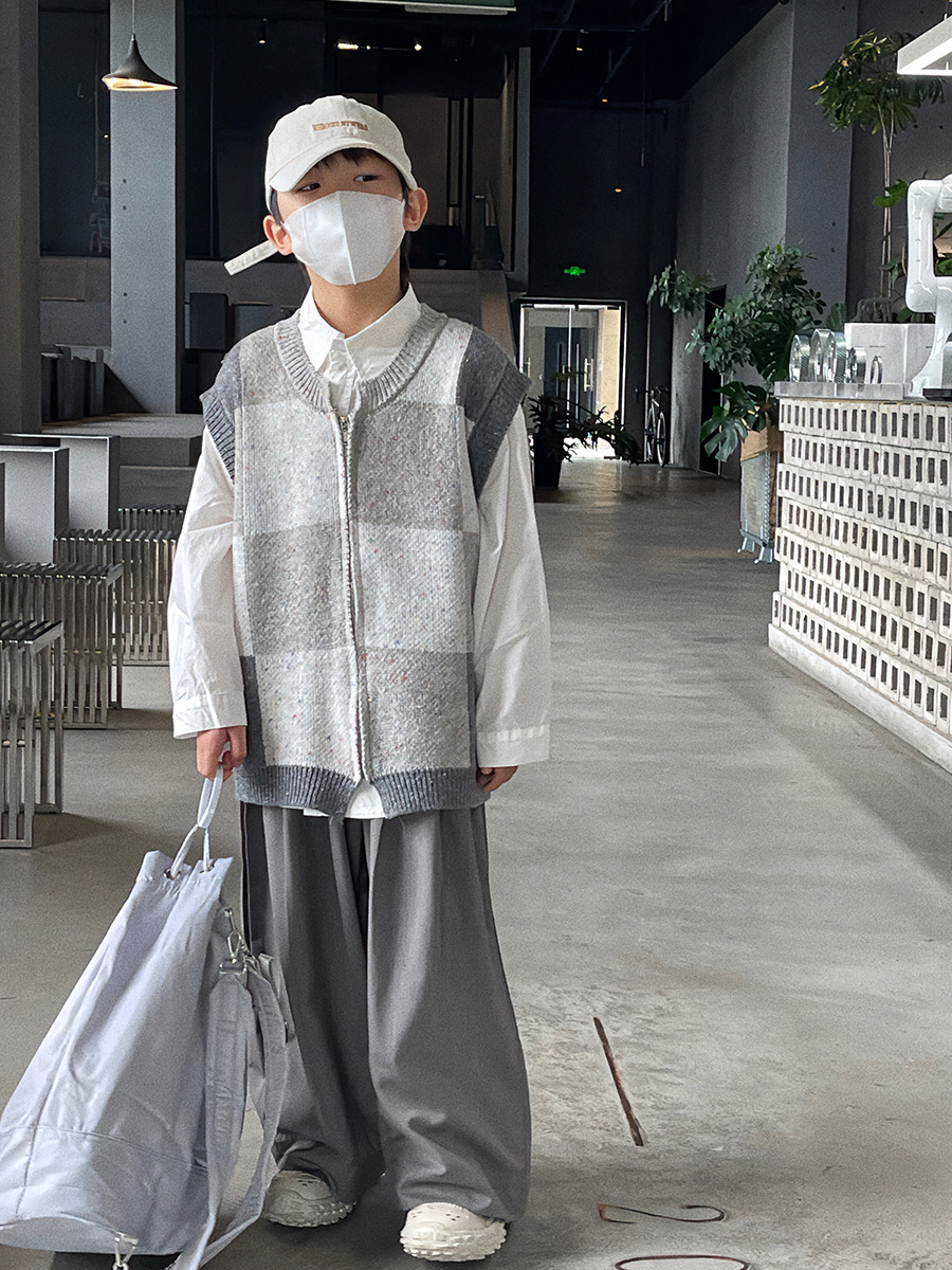 Baoduo 아동복 남아 가디건 스웨터 조끼 2023 새로운 봄과 가을 코트 어린이 한국 격자 무늬 니트웨어