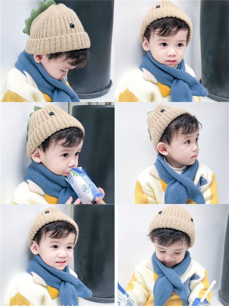 아기 모자 가을과 겨울 귀여운 슈퍼 귀여운 공룡 울 모자 남자와 여자 어린이 모자 아기 모자 니트 모자 한국어