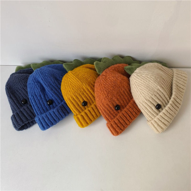 아기 모자 가을과 겨울 귀여운 슈퍼 귀여운 공룡 울 모자 남자와 여자 어린이 모자 아기 모자 니트 모자 한국어스토어 가기