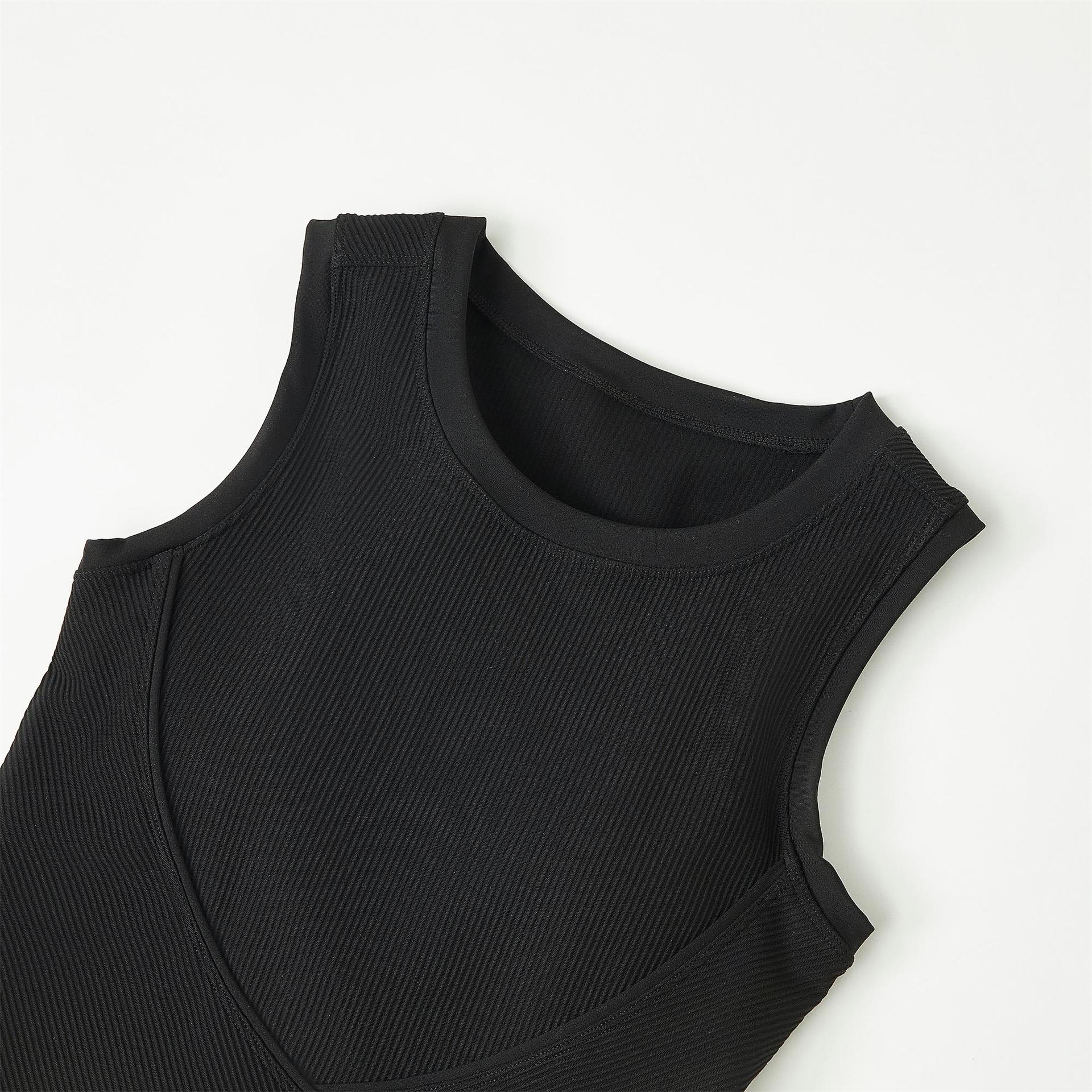 골지 꽉 요가 스포츠 조끼 여성용 겉옷 슬림핏 속건 민소매 피트니스 탑 (가슴 패드 포함) 여름 달리기