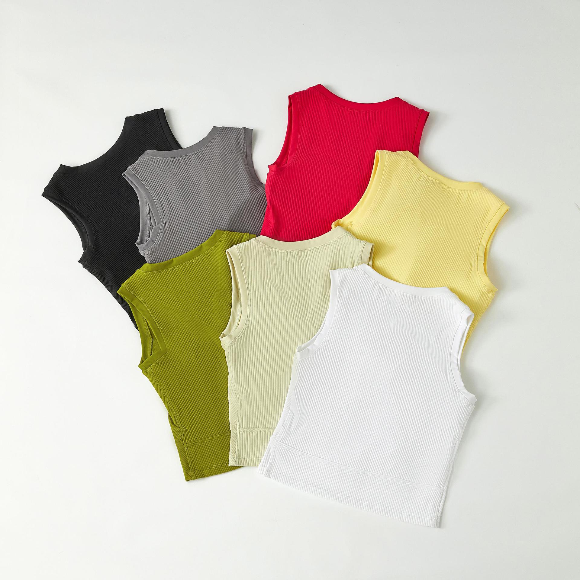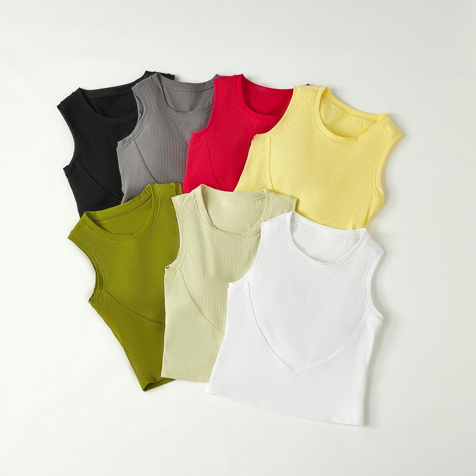 골지 꽉 요가 스포츠 조끼 여성용 겉옷 슬림핏 속건 민소매 피트니스 탑 (가슴 패드 포함) 여름 달리기스토어 가기
