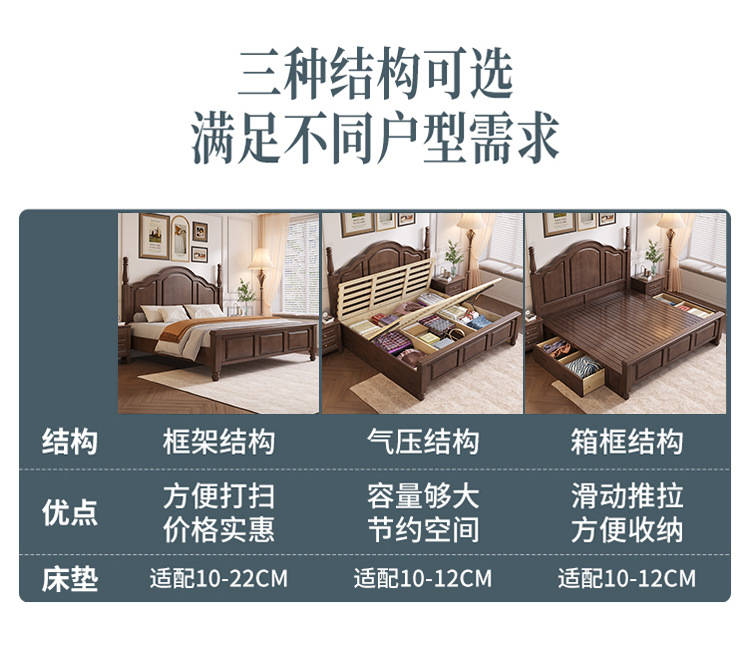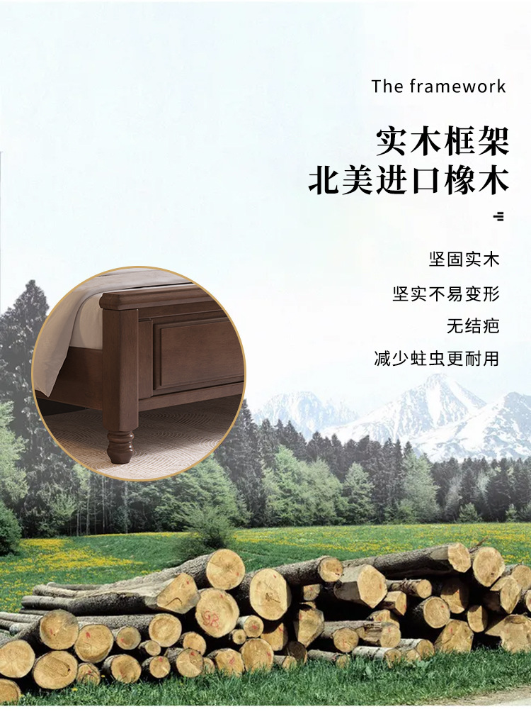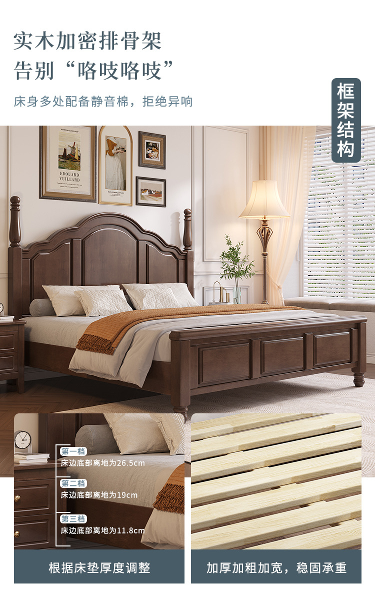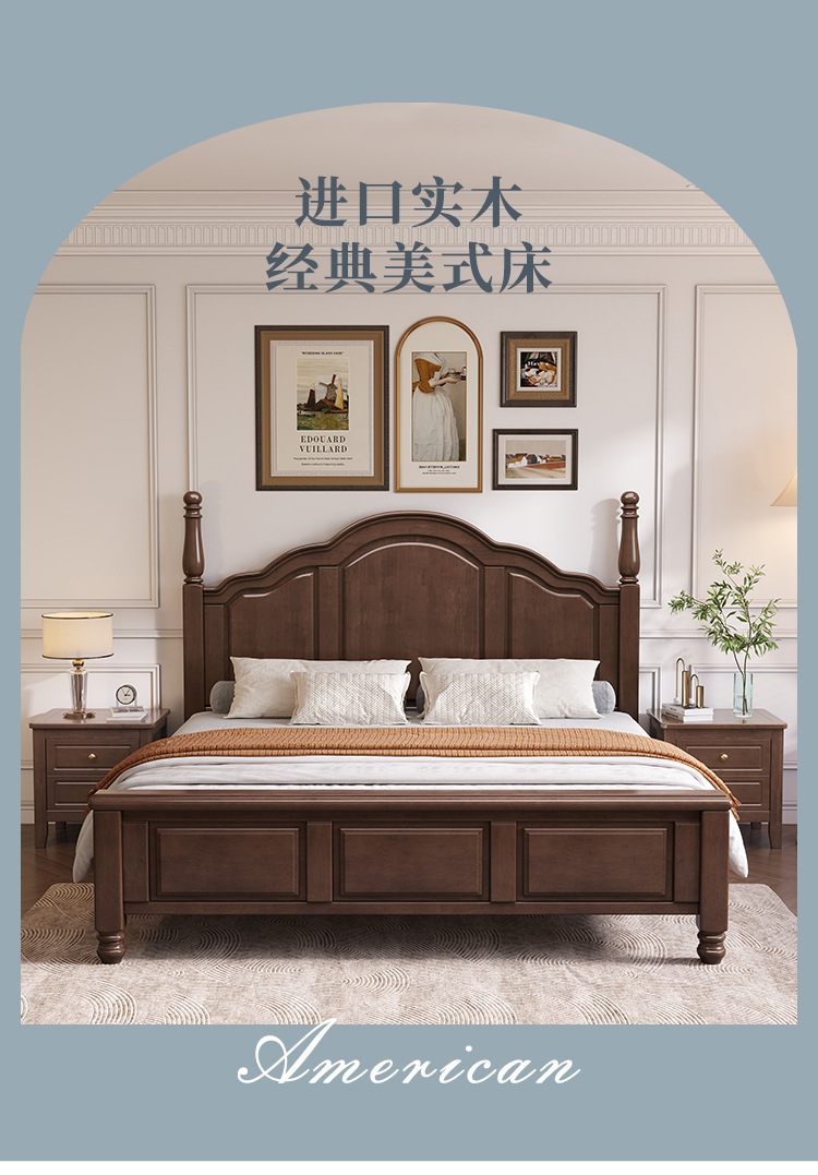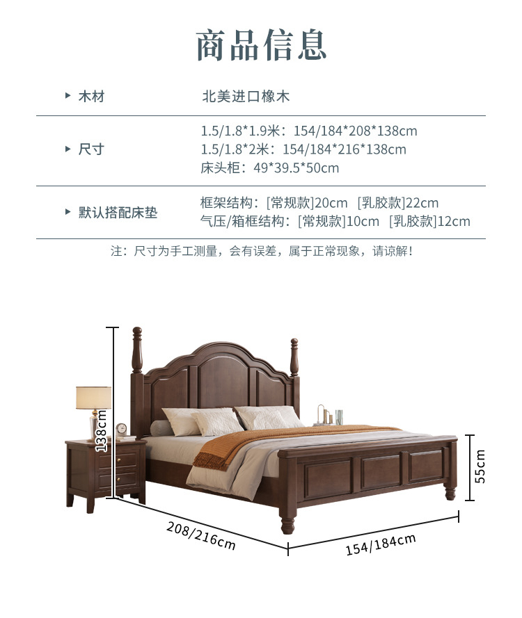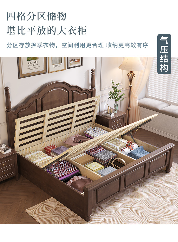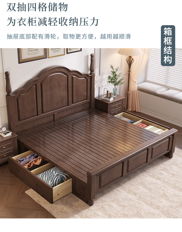 단단한 나무 침대 미국 국가 복고풍 침대 1.8 m 더블 퀸 침대 마스터 침실 오크 웨딩 침대 간단한 1.5 m 수납 침대스토어 가기