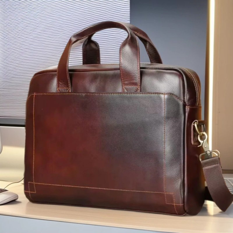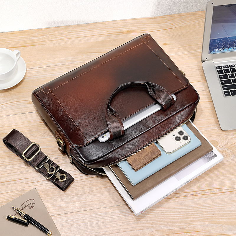 남성용 핸드백 비즈니스 1층 소가죽 문서 사무용 대용량 컴퓨터 가방 정품 가죽 15.6 숄더 크로스백