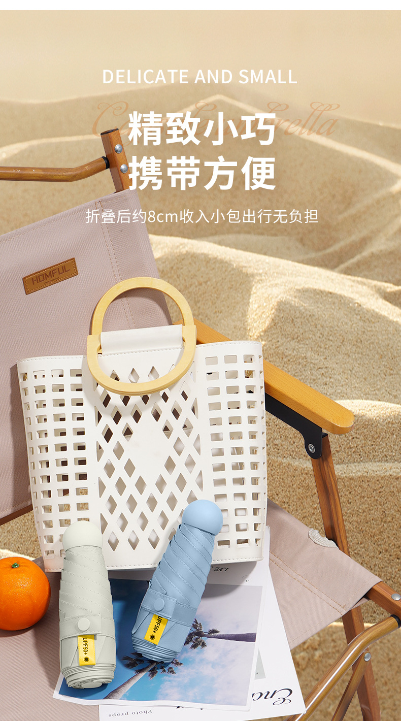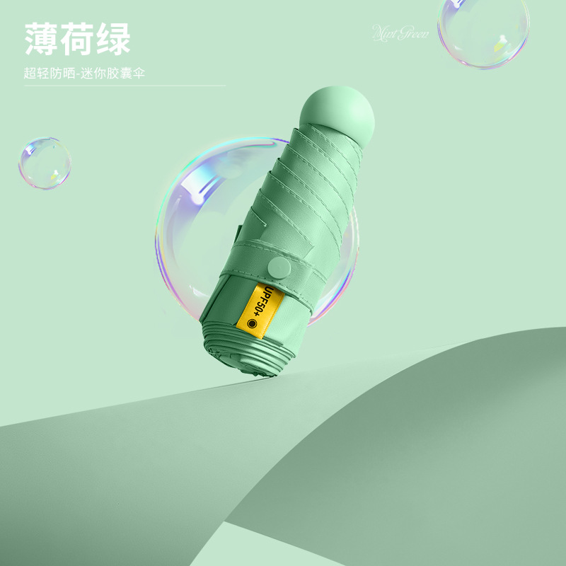 미니 포켓 캡슐 우산 블랙 접착제 자외선 차단제 접는 차양 우산 여성용 햇빛과 비 이중 사용 50% 접이식 태양 광고 우산스토어 가기