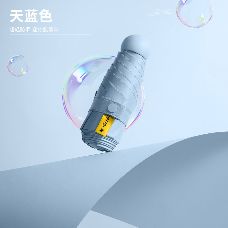 미니 포켓 캡슐 우산 블랙 접착제 자외선 차단제 접는 차양 우산 여성용 햇빛과 비 이중 사용 50% 접이식 태양 광고 우산