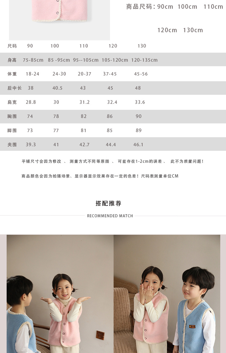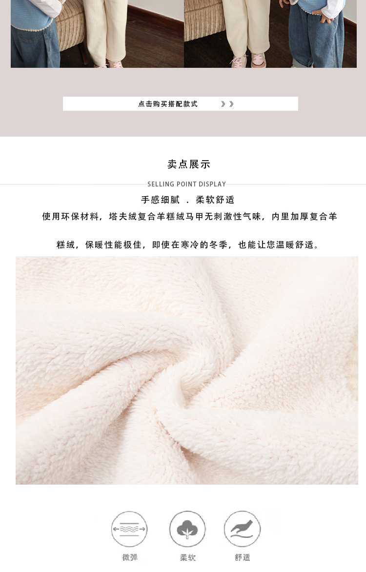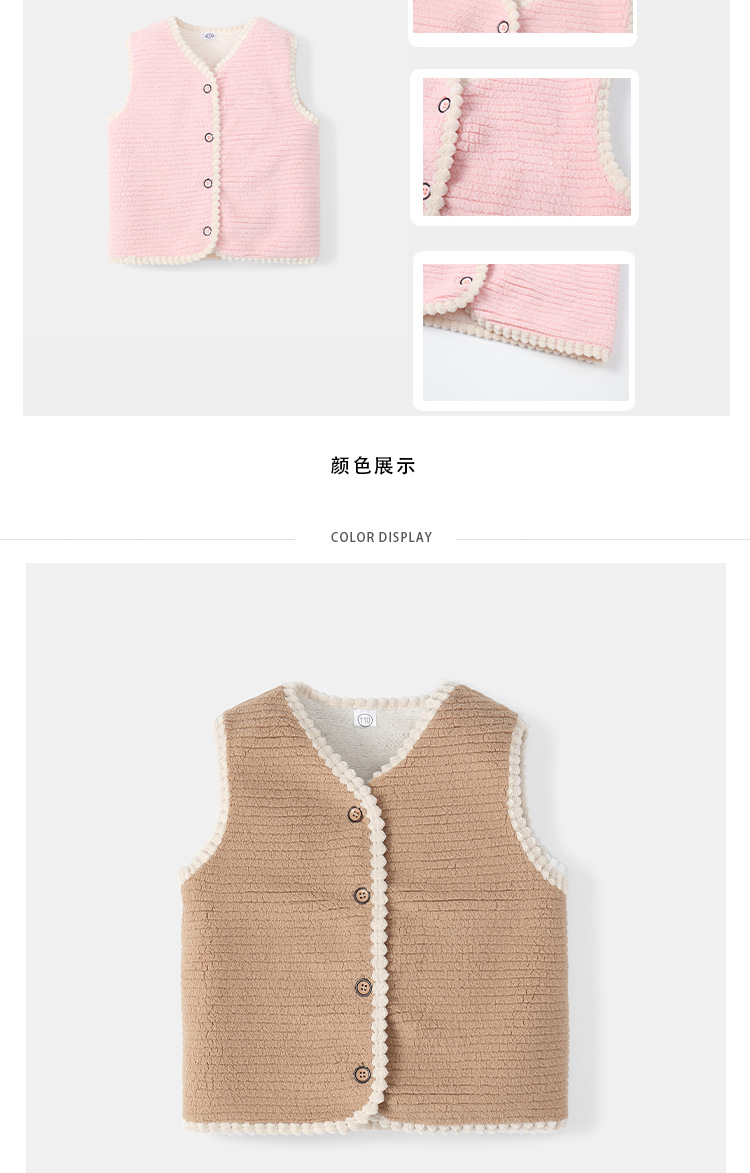 가을 겨울 신상 양고기 벨벳 아동 조끼, 아기용 벨벳 및 두꺼운 소재, 남아 및 여아용 아우터 조끼, 국경 간 도매스토어 가기