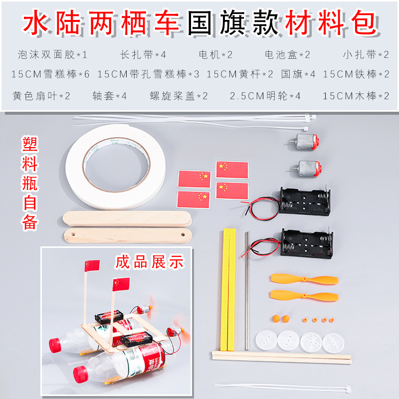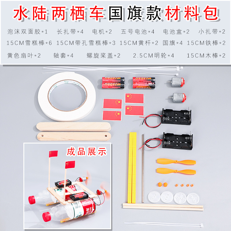 과학 기술 작은 생산 작은 발명품 어린이 교육 장난감 과학 작은 실험 수제 수륙 양용 자동차 쓰레기를 보물로 바꾼다