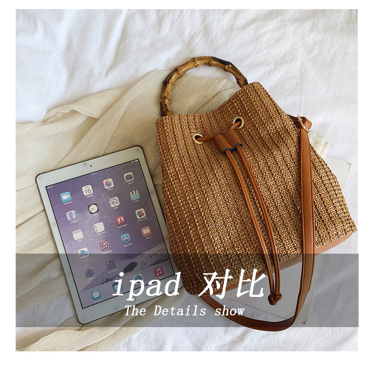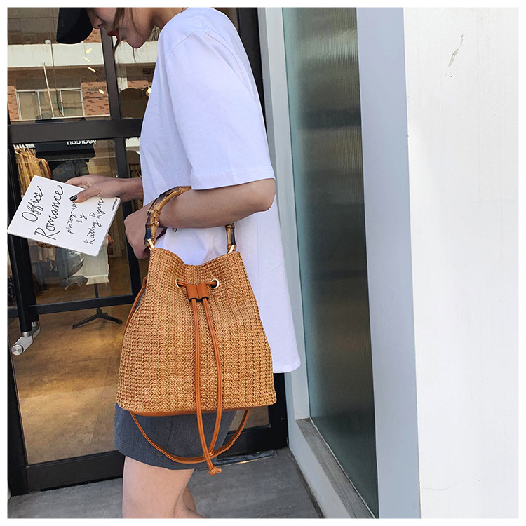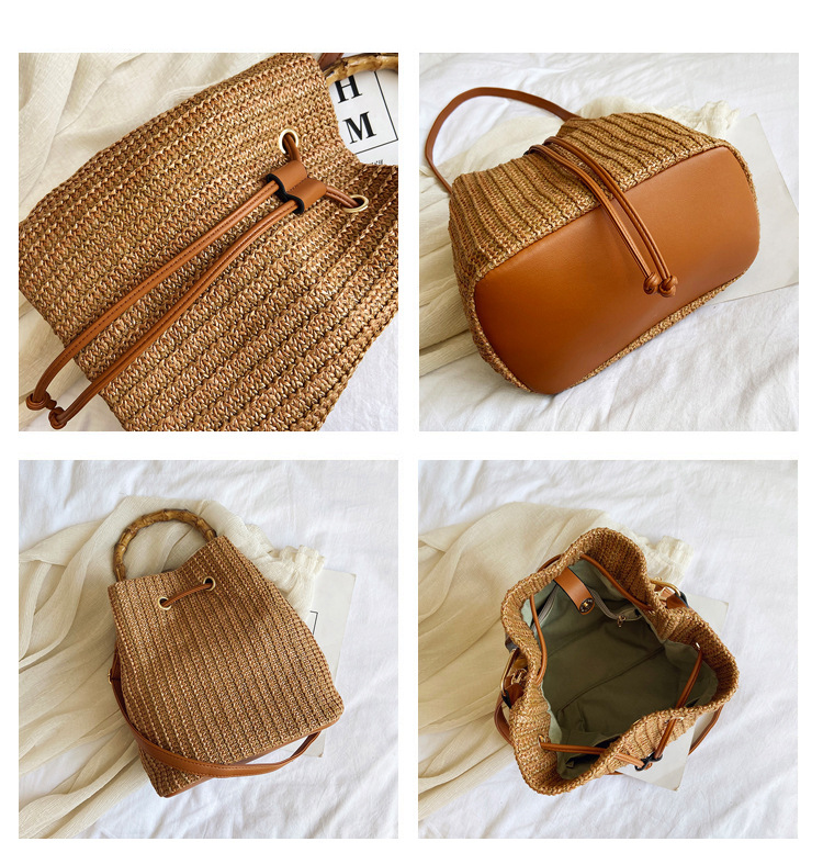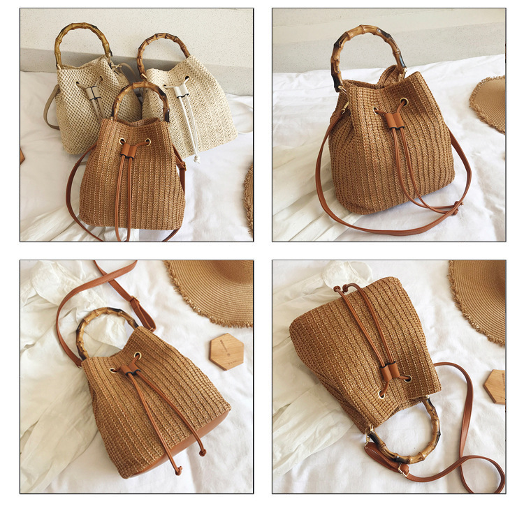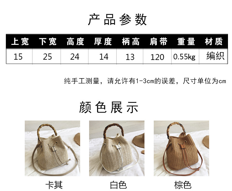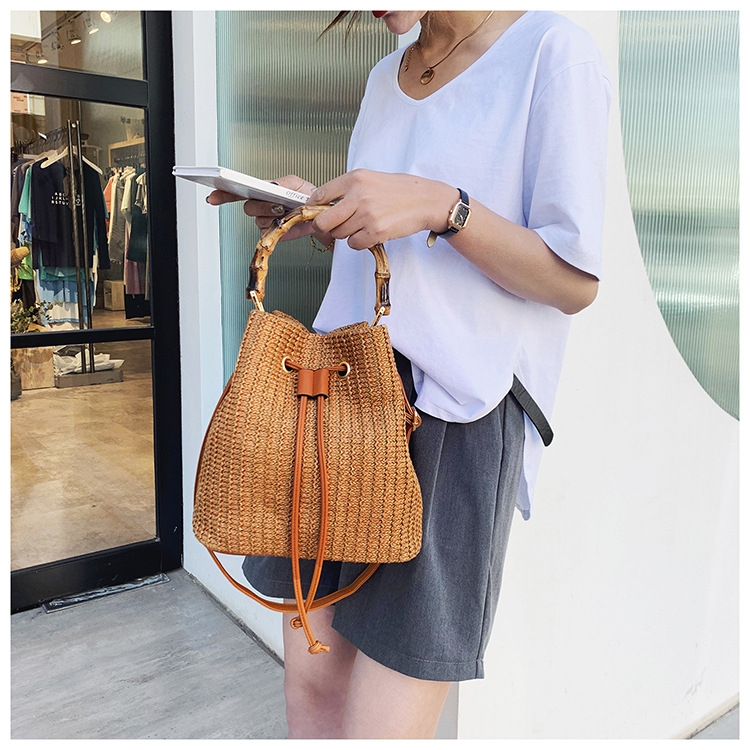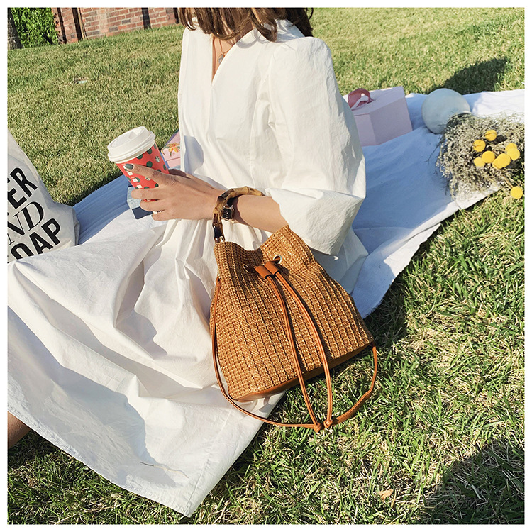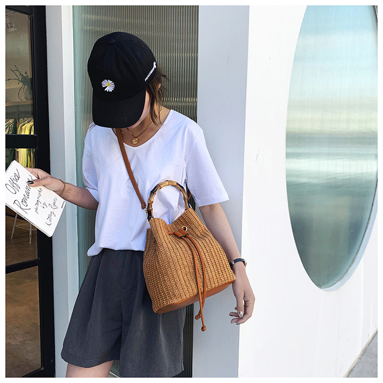 2025년 신상 휴대용 밀짚 가방 여름 한국 스타일 패션 수출용 숄더백 크로스백 대나무 가방 버킷백 비치백스토어 가기