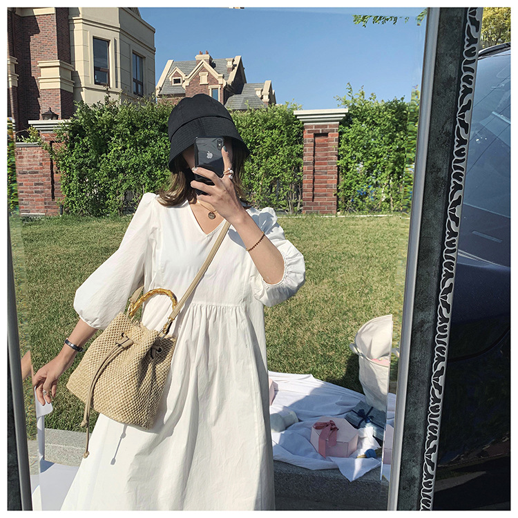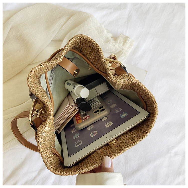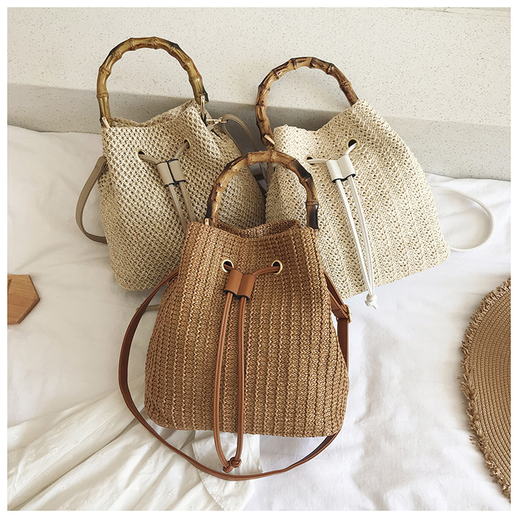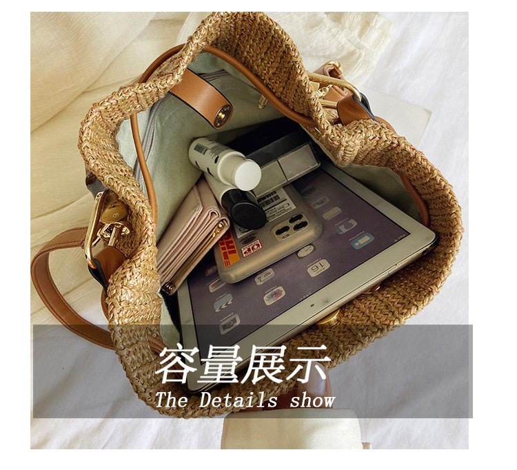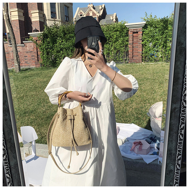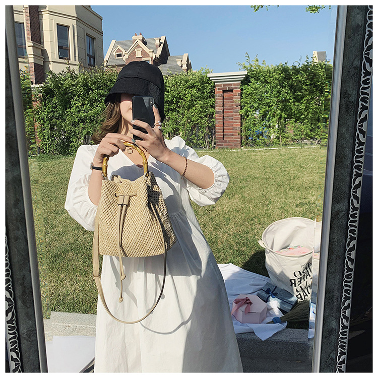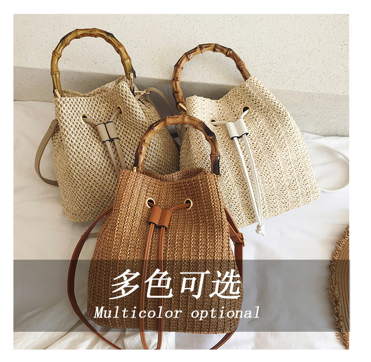 2025년 신상 휴대용 밀짚 가방 여름 한국 스타일 패션 수출용 숄더백 크로스백 대나무 가방 버킷백 비치백스토어 가기