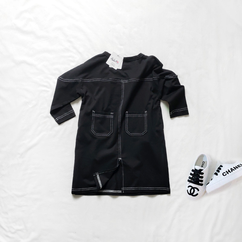 时尚舒适~三色撞色线拼接长袖长裙来咯