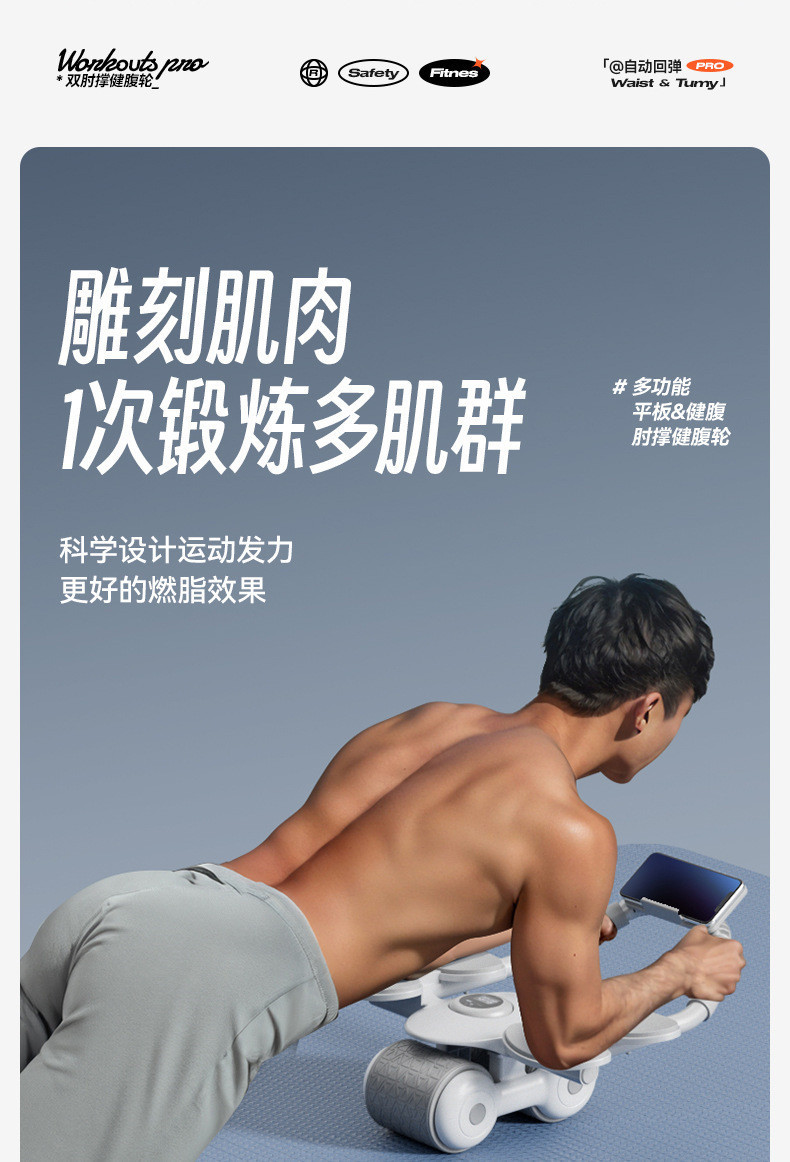 복부 강화 휠 자동 리바운드 복부 근육 훈련 팔꿈치 지원 얇은 배 아티팩트 복부 팅커 플랫 복부 롤 홈 피트니스 장비스토어 가기