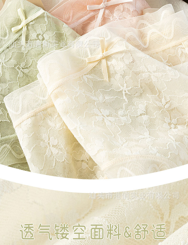 레이스 팬티 소녀 자카드 미드 웨이스트 프렌치 편안한 통기성 피부 친화적 인 원활한 달콤한 부드러운 숙녀 팬티