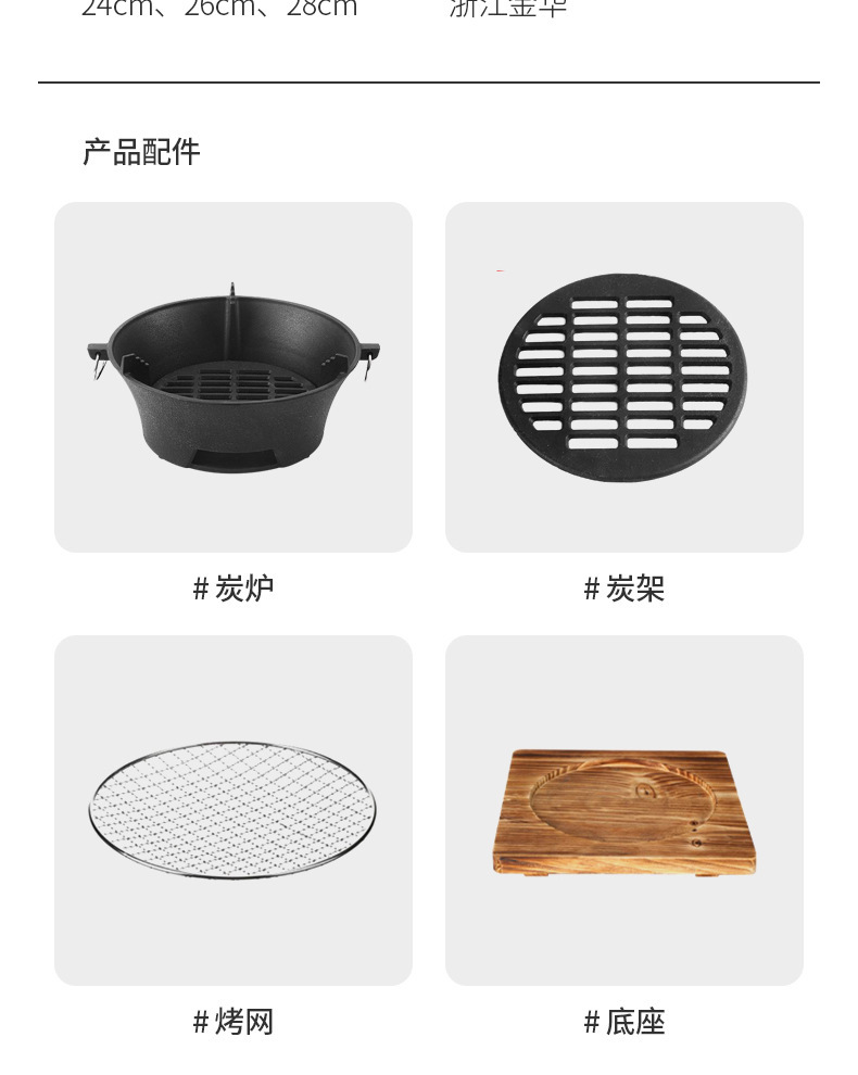 • 26cm 용광로 + 베이킹 그물 + 나무 받침대.