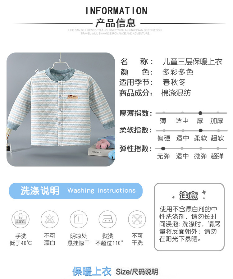 유아용 Folio 3 층 따뜻한 싱글 탑 남성 및 여성용 아기의 두꺼운 가을 옷 가을과 겨울 어린이 면 베이스 셔츠스토어 가기