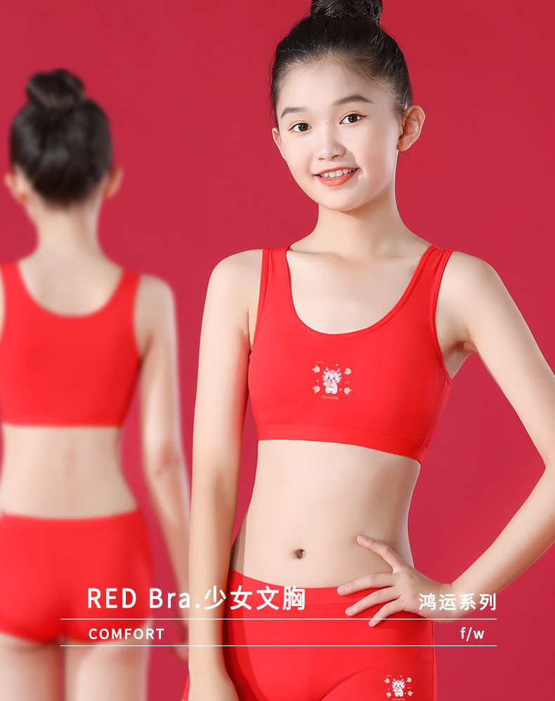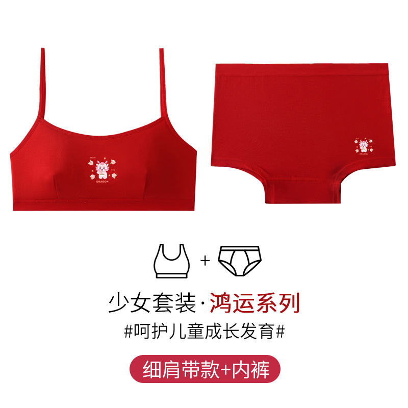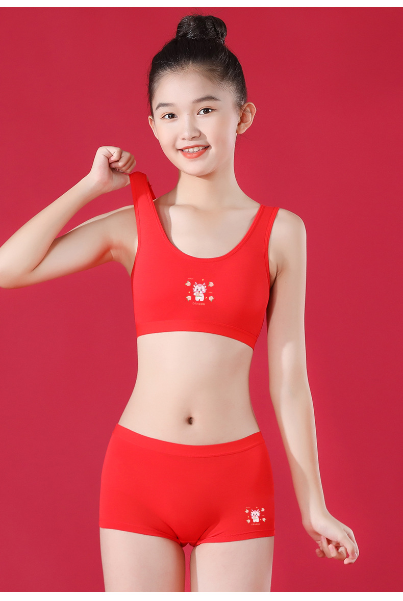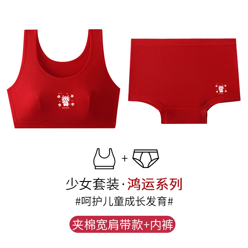 Benmingnian 여아 발달 속옷 순수한면 안티 범프 큰 빨간 학생 용의 해에 대 한 작은 조끼 세트스토어 가기