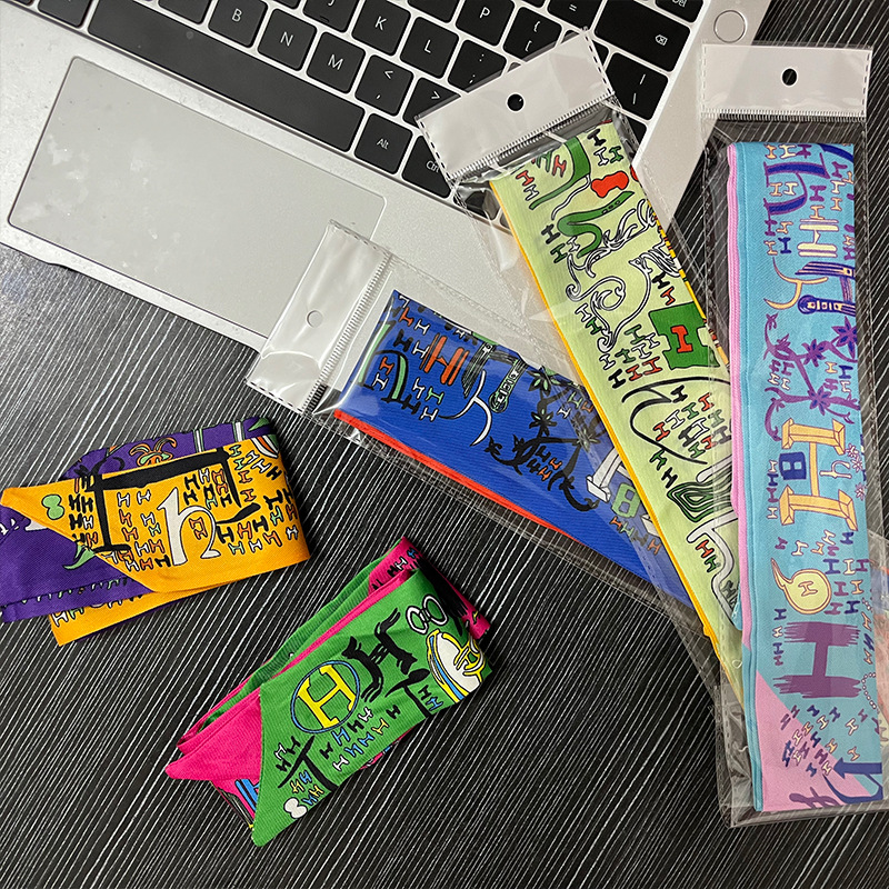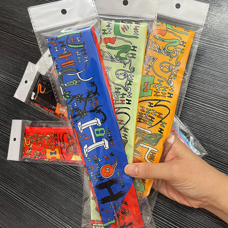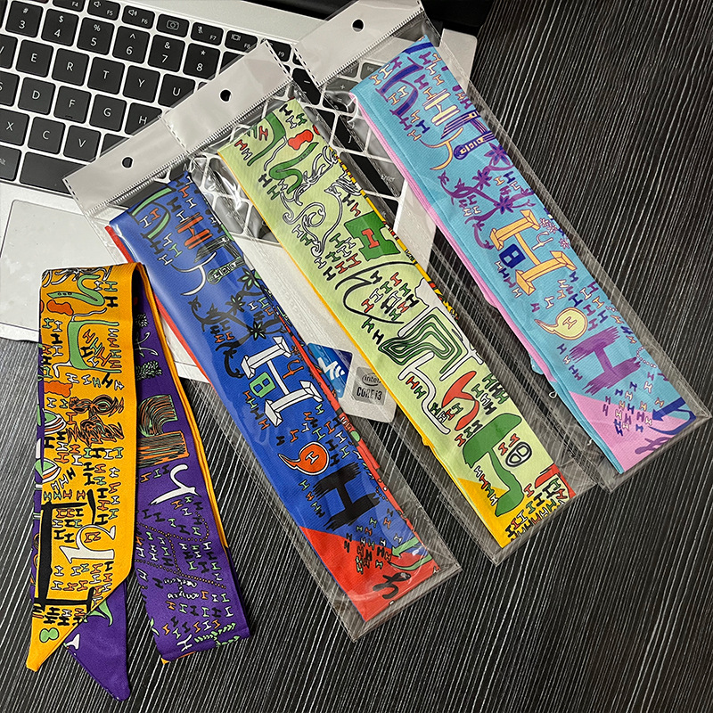 팝 백 별도 포장 긴 작은 실크 스카프 타이 백 실크 스카프 여성용 편지 리본 헤어 벨트 얇은 좁은 리본 활