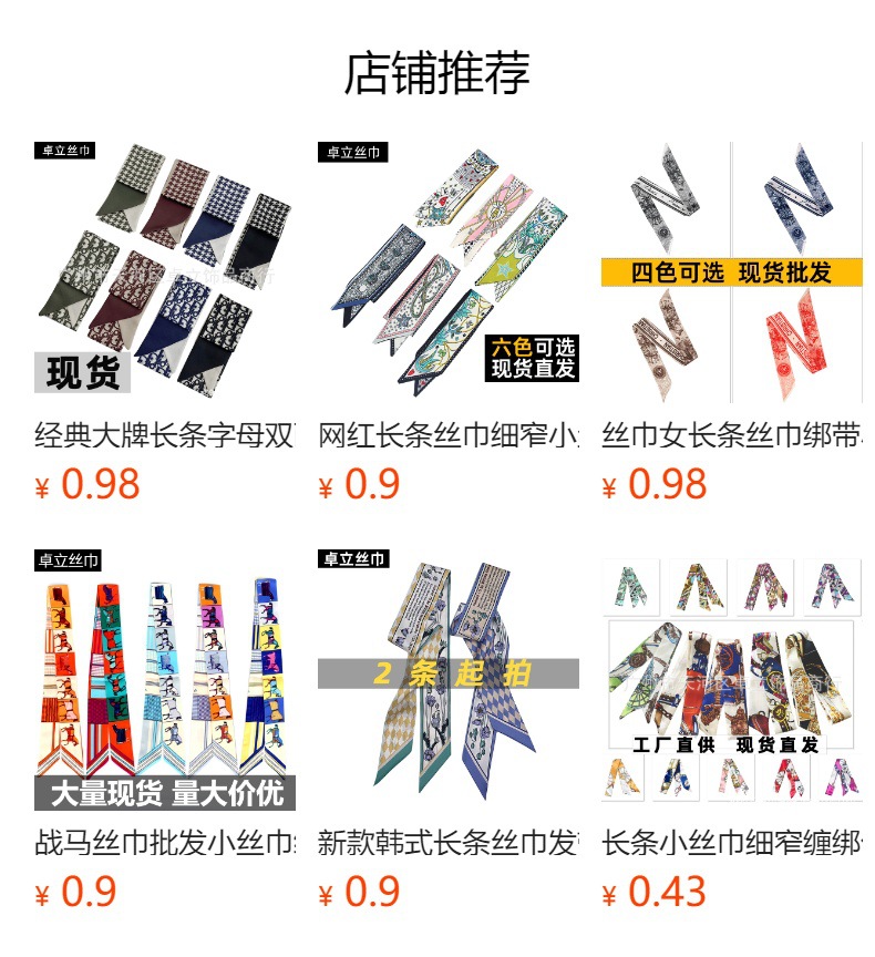 팝 백 별도 포장 긴 작은 실크 스카프 타이 백 실크 스카프 여성용 편지 리본 헤어 벨트 얇은 좁은 리본 활스토어 가기