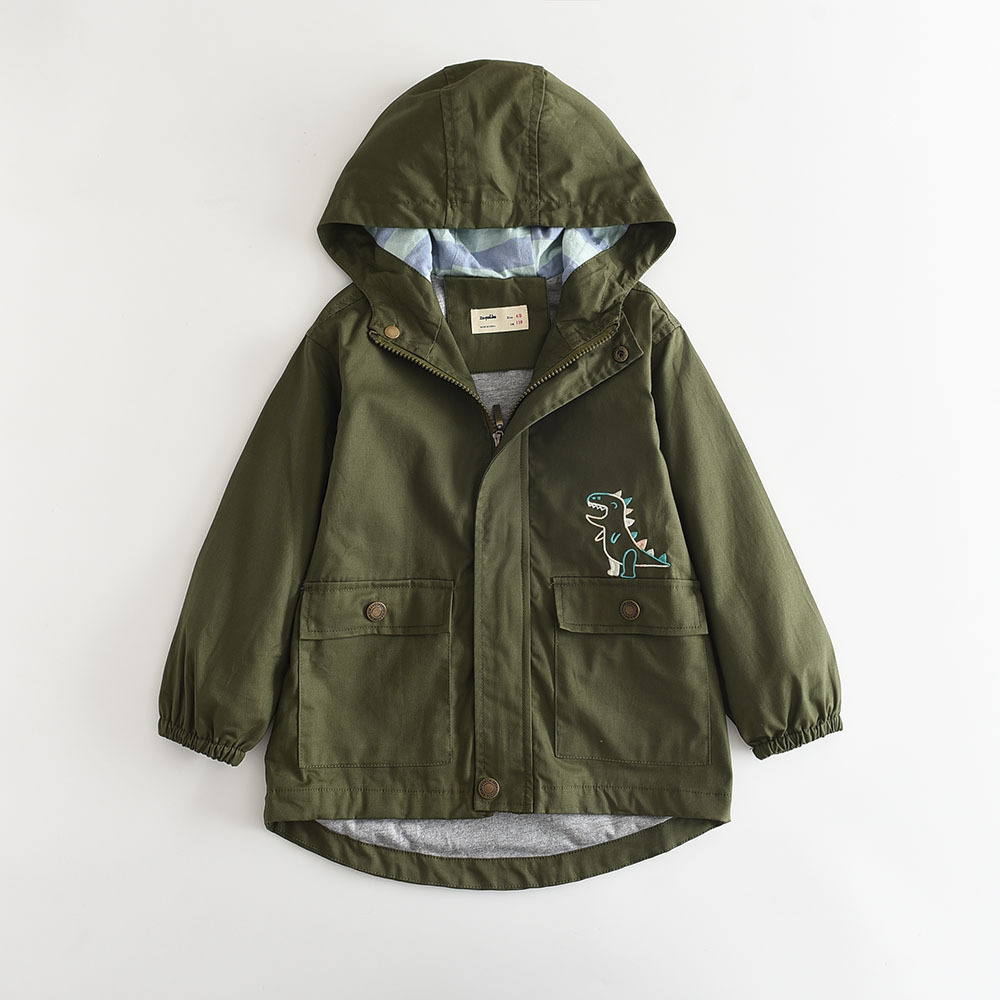 2023秋季新款 恐龙绣花 男童双层连帽风衣外套