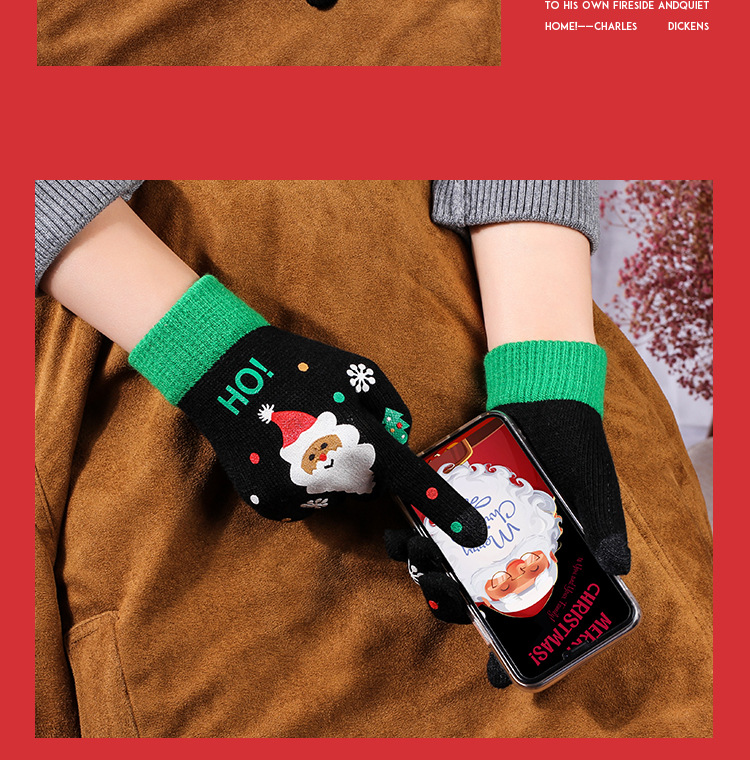 크리스마스 장갑 만화 캐릭터 니트 모직 따뜻한 성인용 야외 스포츠 라이딩 터치스크린 커플용 다섯손가락 방한 장갑스토어 가기