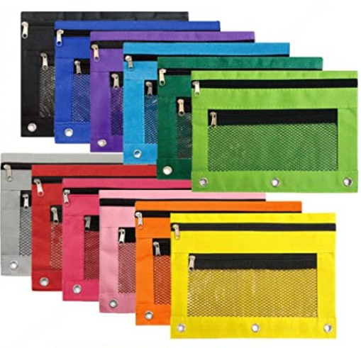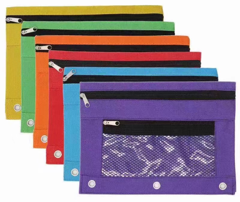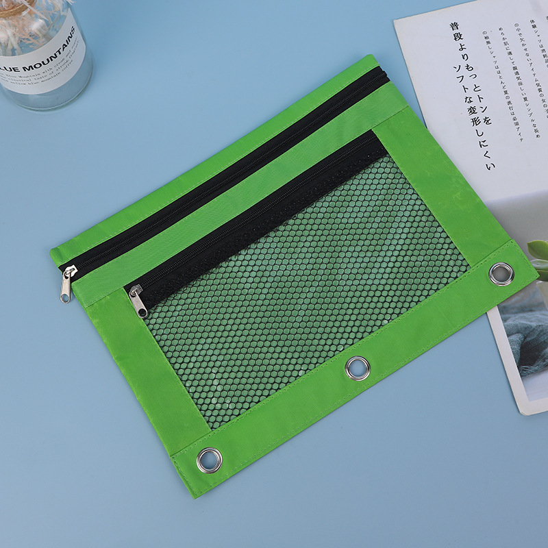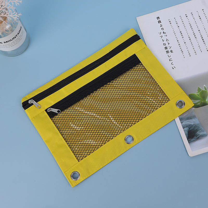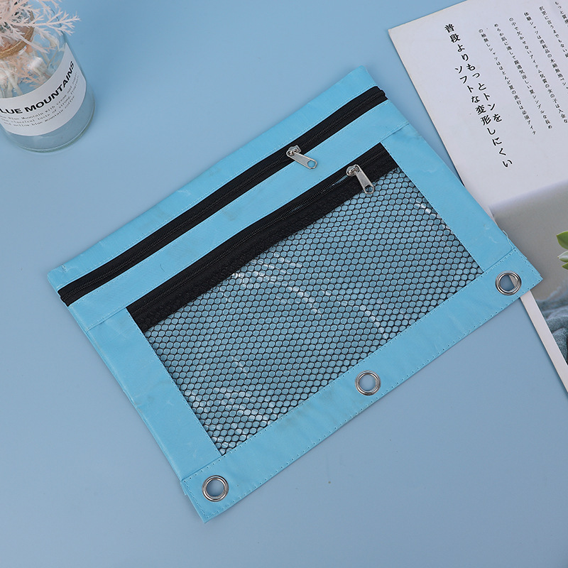 3 홀 필통 더블 레이어 지퍼 옥스포드 문서 가방 공압 바인더 문구 가방 방수 비주얼 스토리지 가방 재고