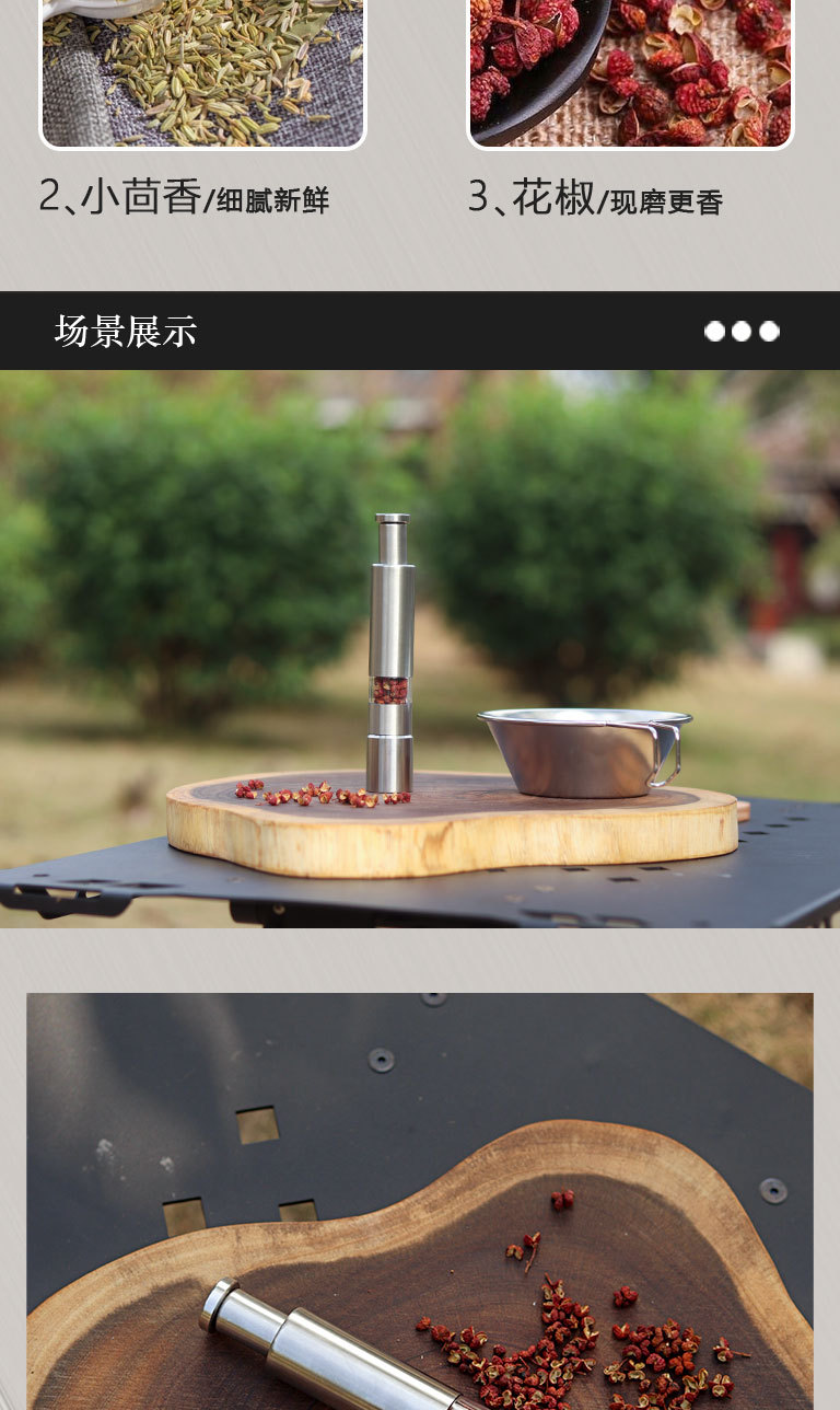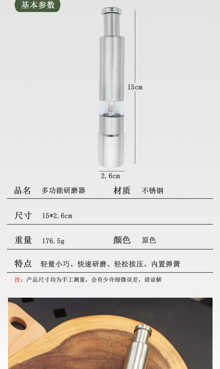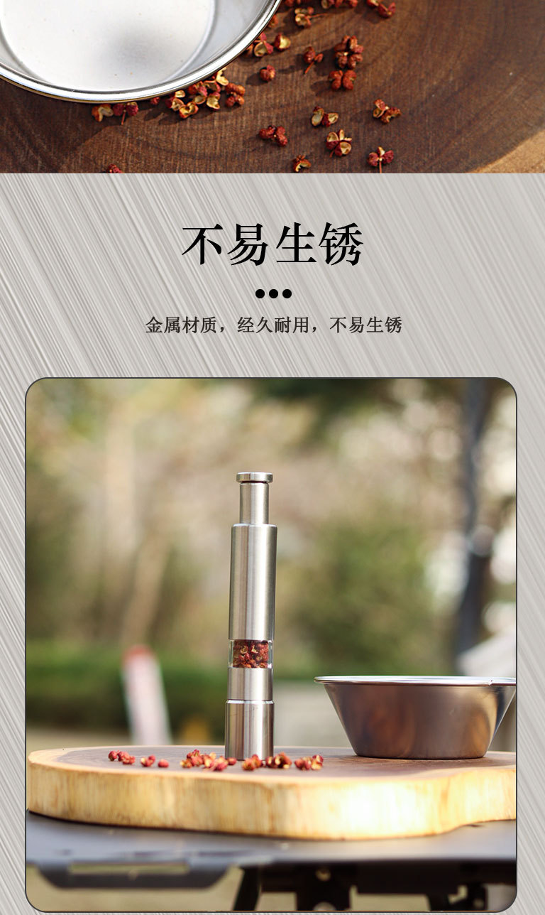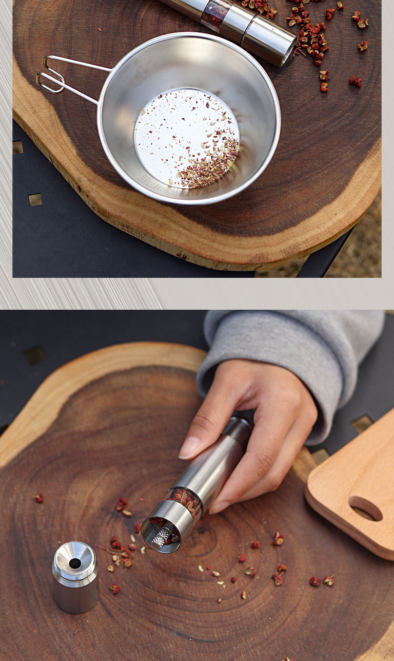 야외 스테인레스 스틸 수동 블랙 페퍼 그라인더 캠핑 용품 프레스 페퍼 그라인더 가정용 페퍼 그라인딩 병스토어 가기