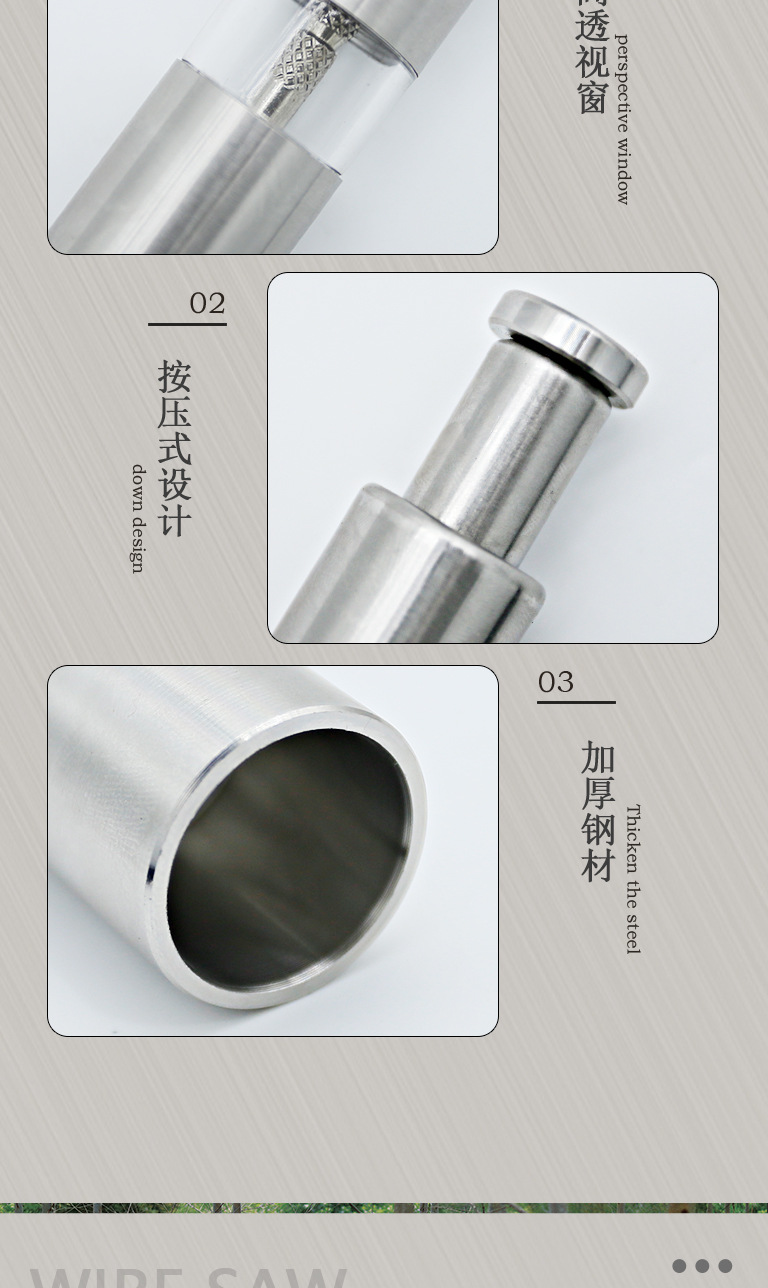 야외 스테인레스 스틸 수동 블랙 페퍼 그라인더 캠핑 용품 프레스 페퍼 그라인더 가정용 페퍼 그라인딩 병