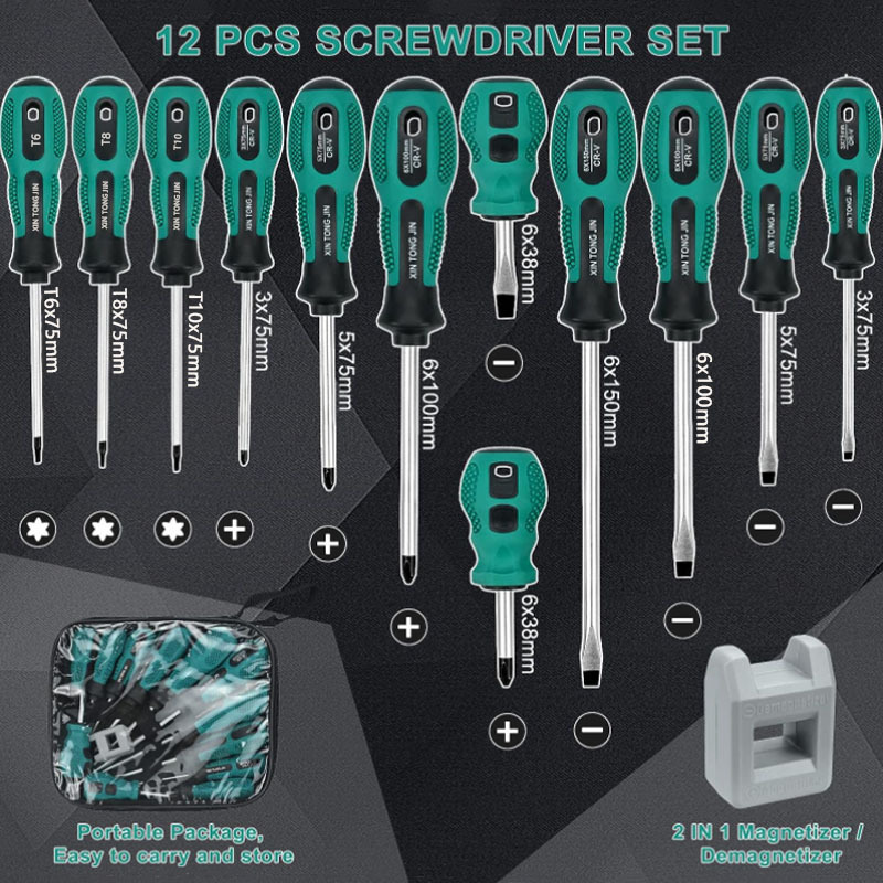 12 스크루 드라이버 세트 크로스 한 단어 하드웨어 도구 조합 세트 크로스 국경 특별 뜨거운 판매 폭발성 스크루 드라이버스토어 가기