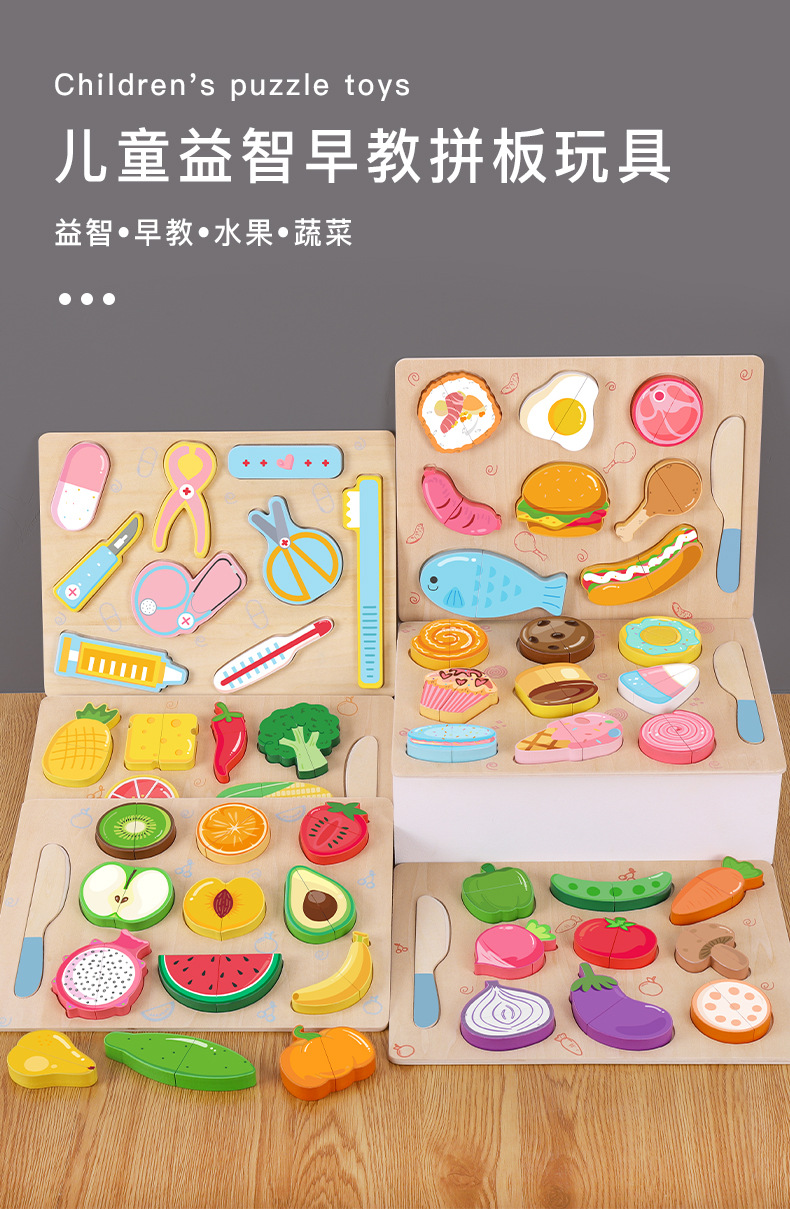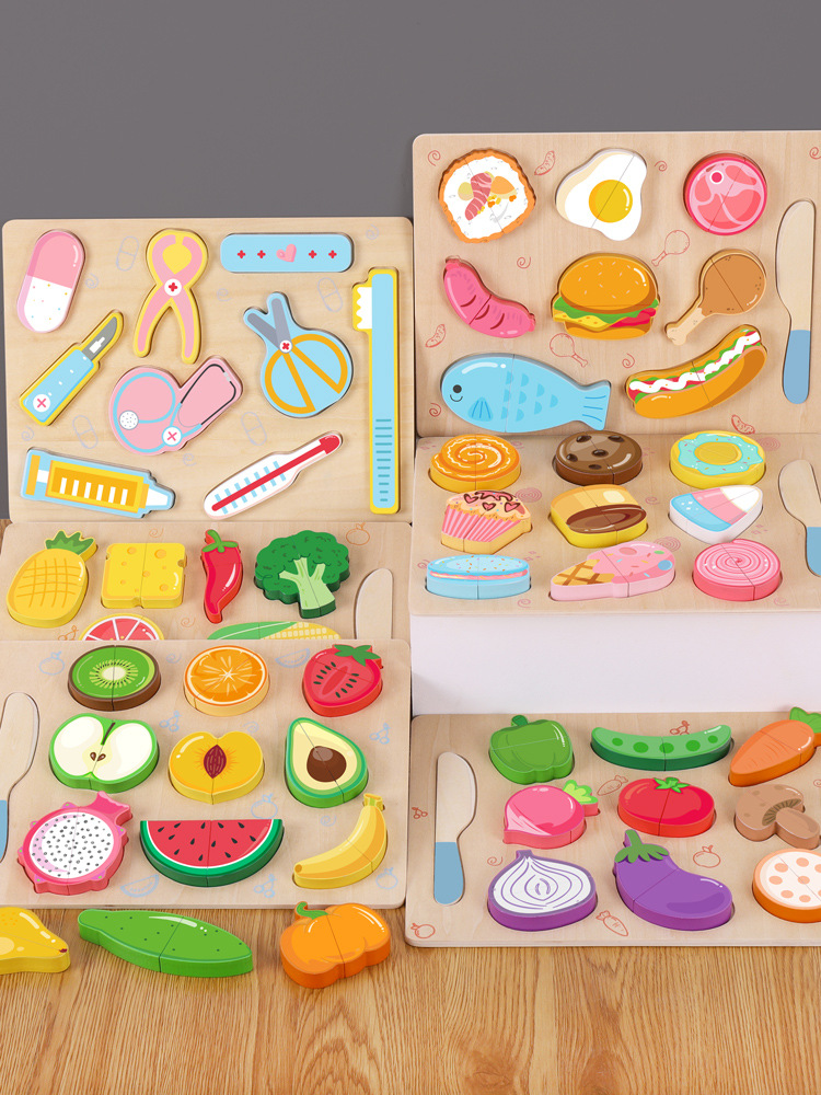 국경 간 나무 자기 직소 과일 및 야채 절단 및 직소 직소 어린이 시뮬레이션 퍼즐 및 컷 홈 장난감 참조스토어 가기