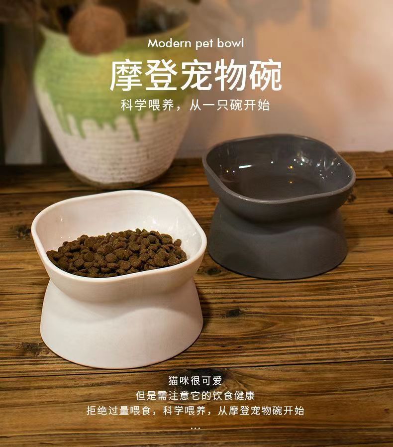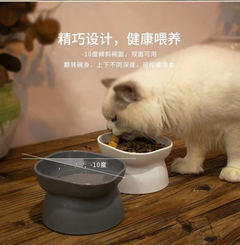 새로운 운모 그릇 고양이 그릇 개 그릇 애완 동물 그릇 비스듬한 입 높은 발 보호 경추 개 고양이 음식 분지 애완 동물 용품