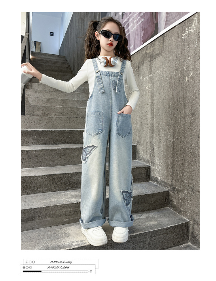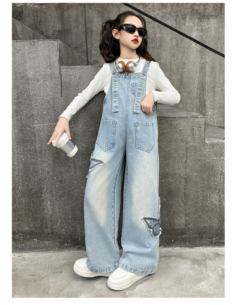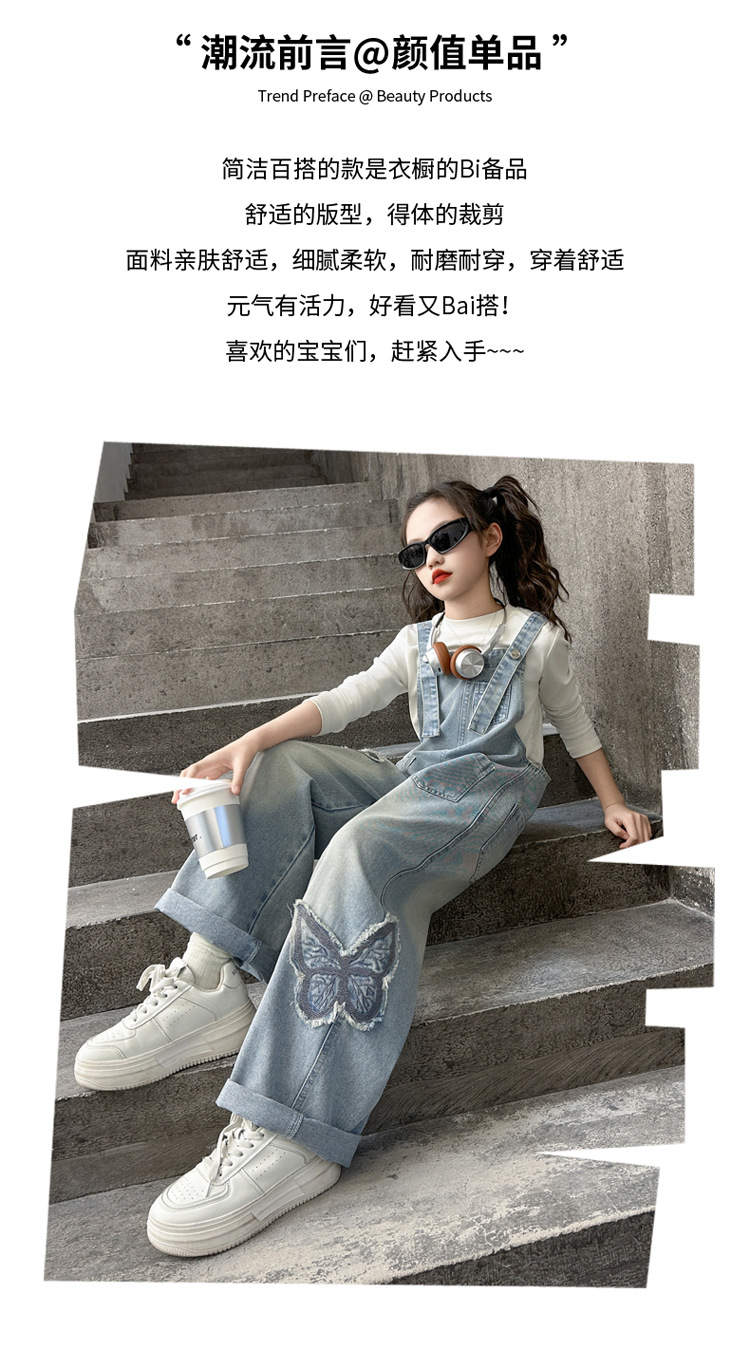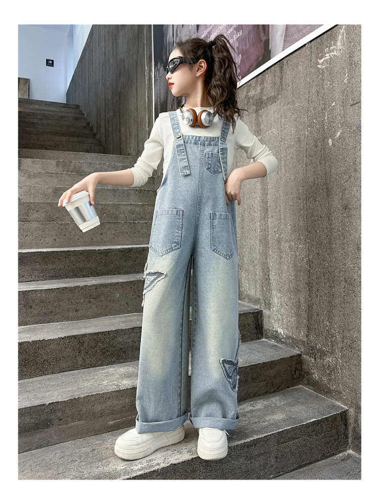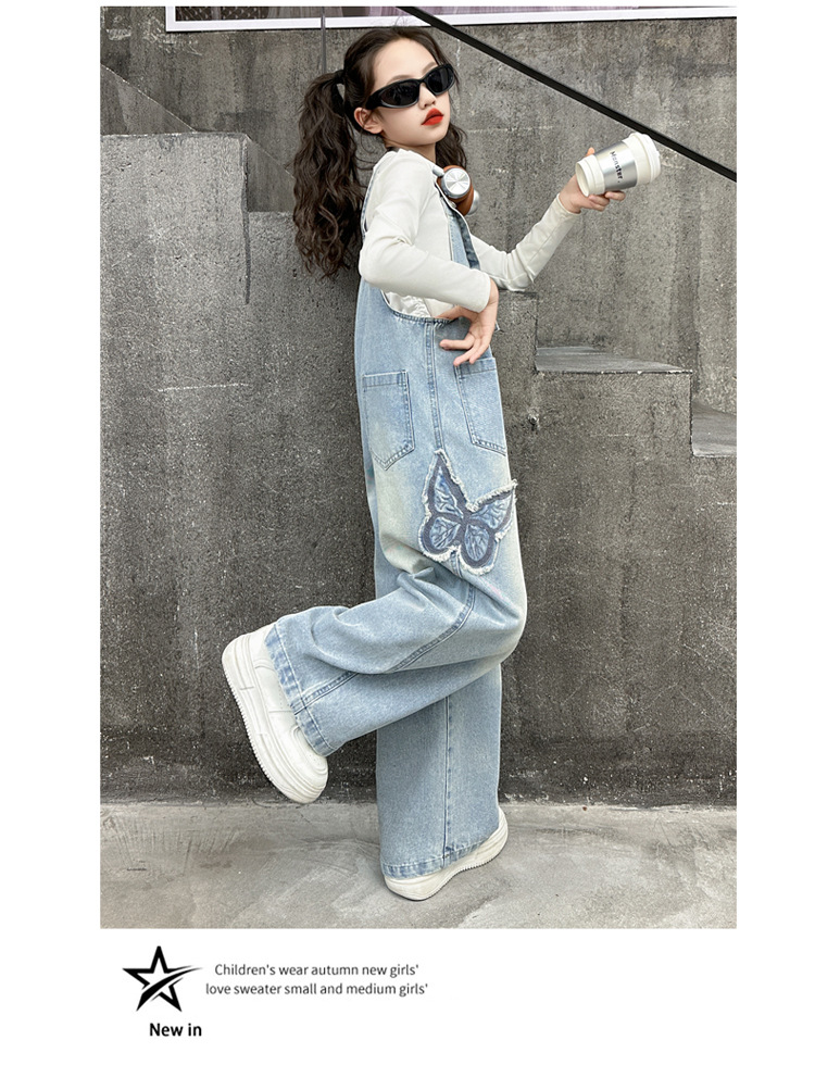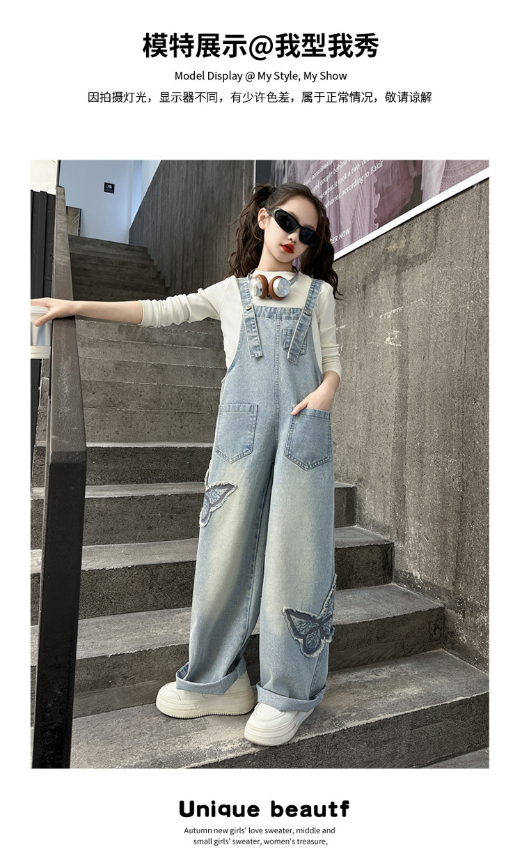 소녀들의 데님 2025 년 봄과 가을 새로운 도착 중년 어린이 인터넷 연예인 느슨한 유행 올매치 데님 오버롤스토어 가기