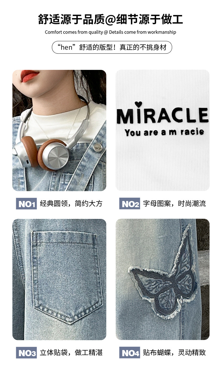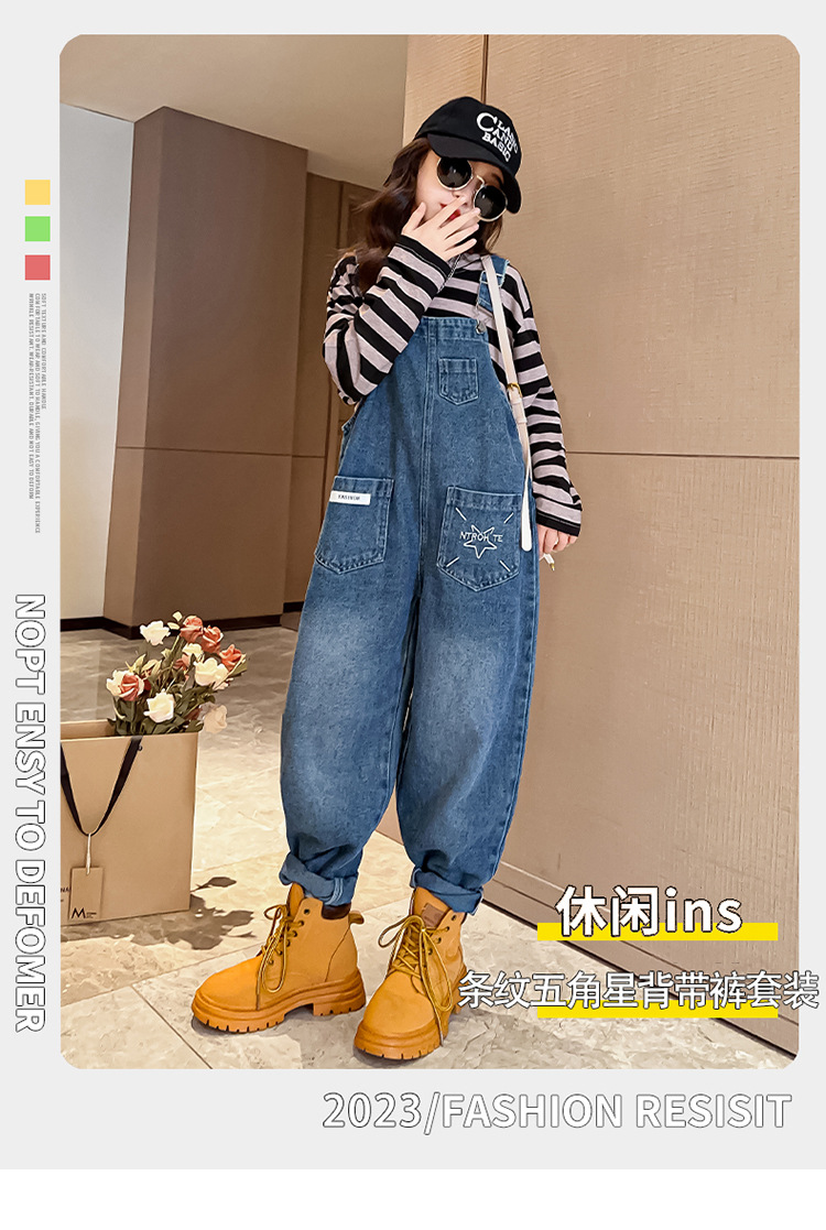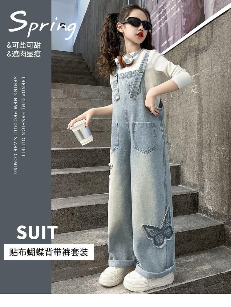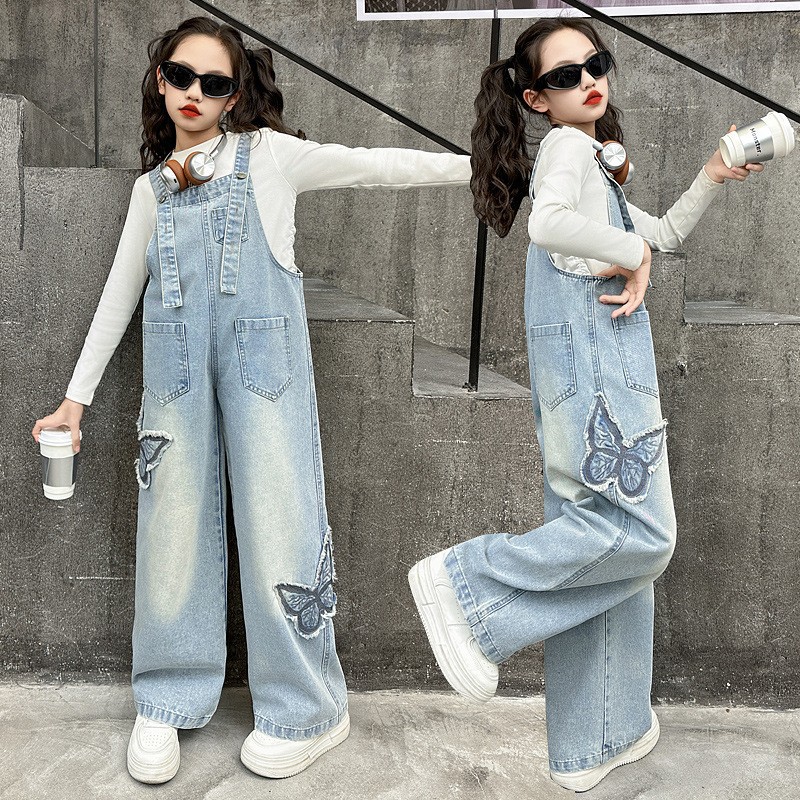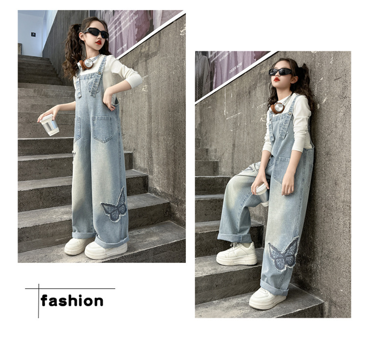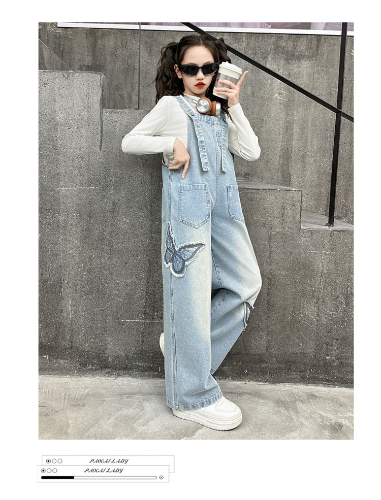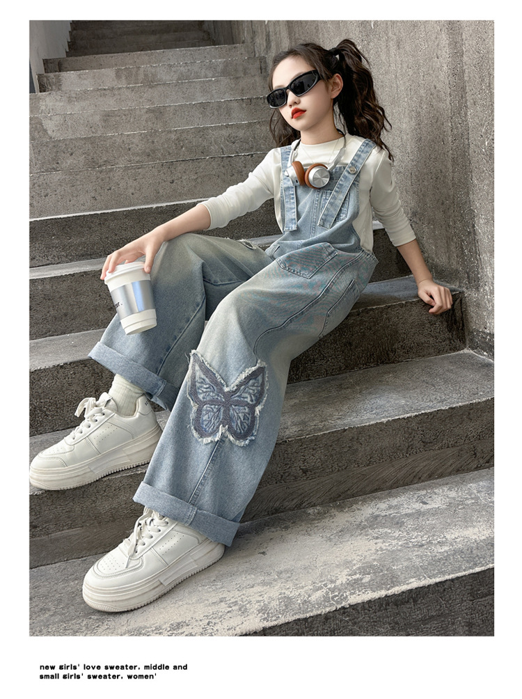 소녀들의 데님 2025 년 봄과 가을 새로운 도착 중년 어린이 인터넷 연예인 느슨한 유행 올매치 데님 오버롤스토어 가기