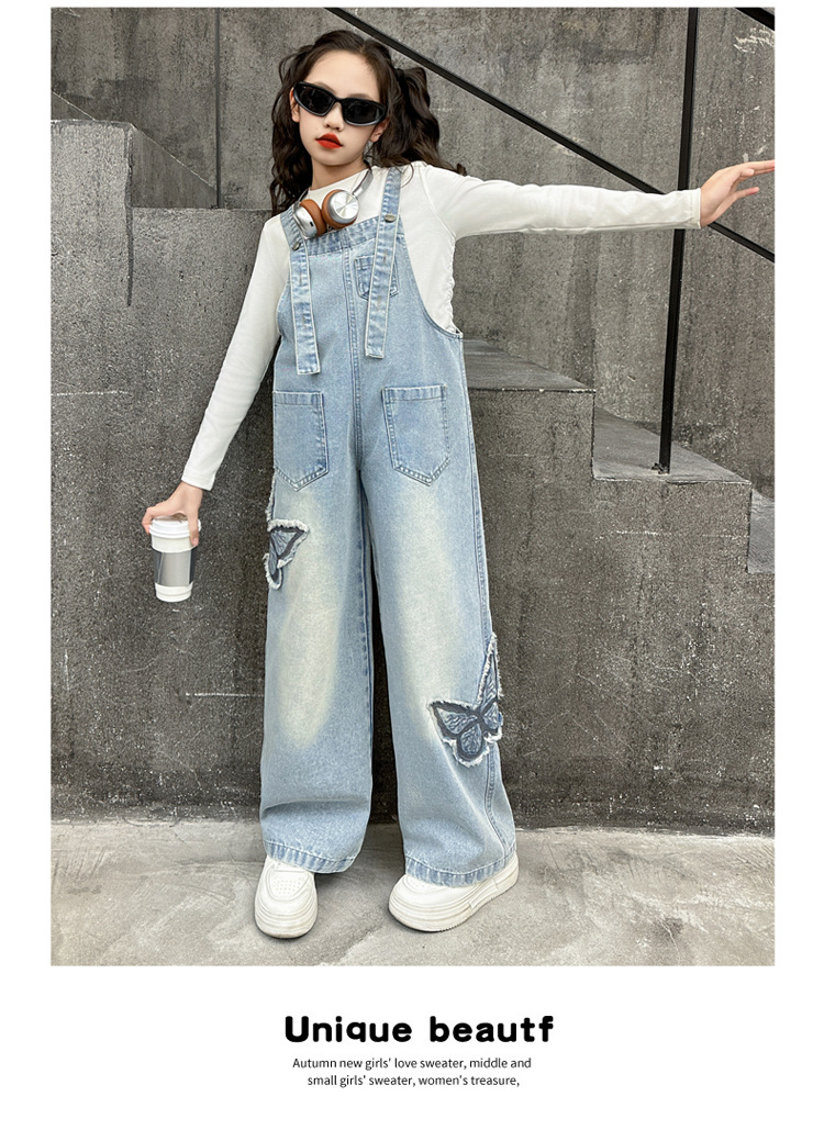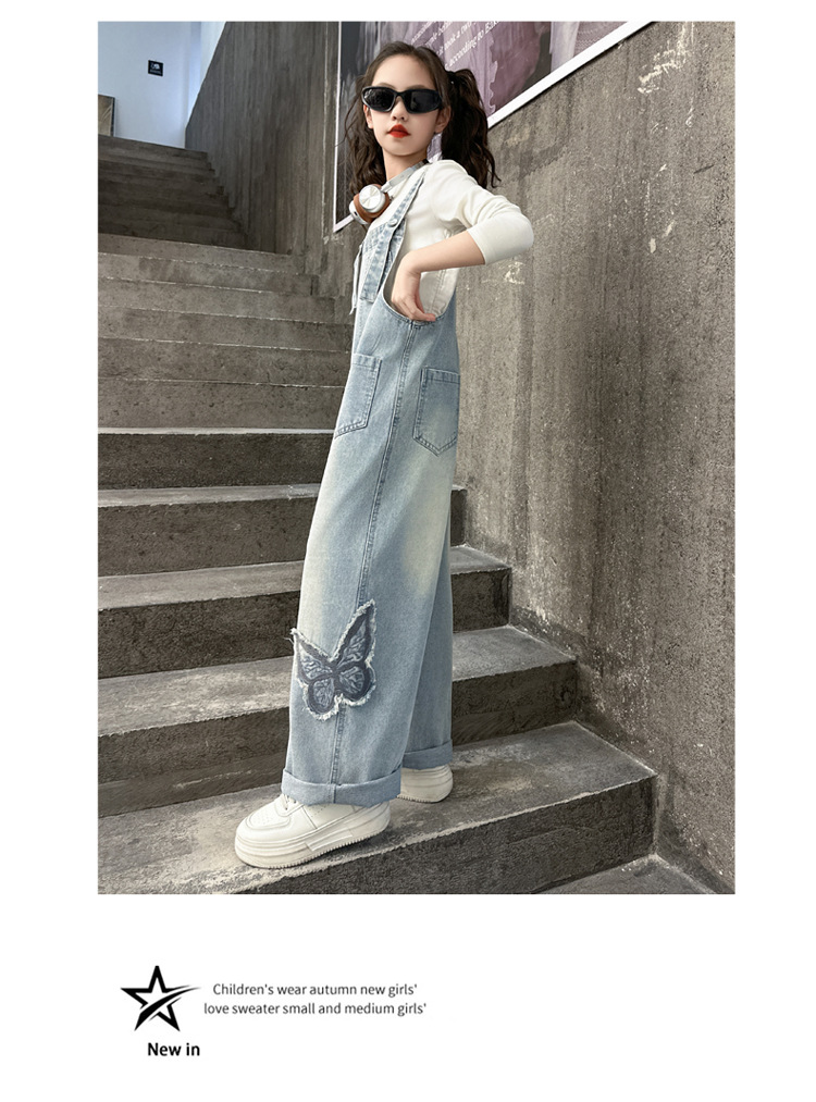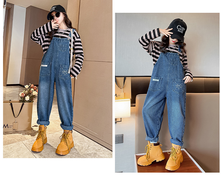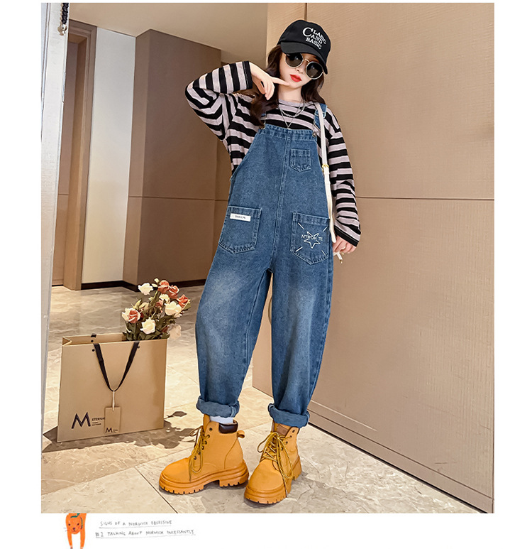 소녀들의 데님 2025 년 봄과 가을 새로운 도착 중년 어린이 인터넷 연예인 느슨한 유행 올매치 데님 오버롤