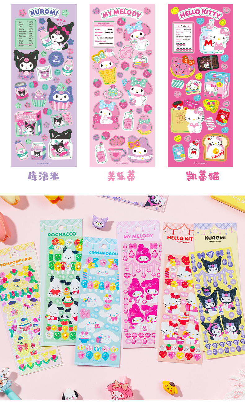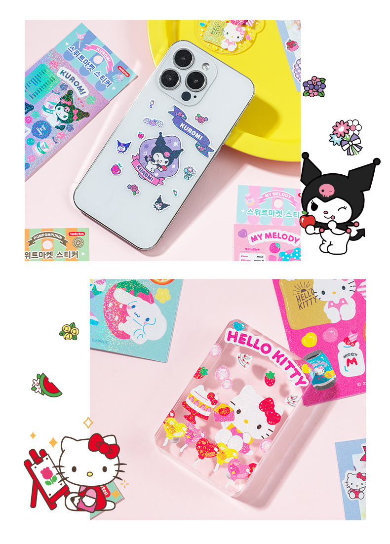 SL-37 산리오 18 레이저 만화 방수 goo 카드 스티커 DIY 귀여운 동물 손 계정 장식 재료 텍스트