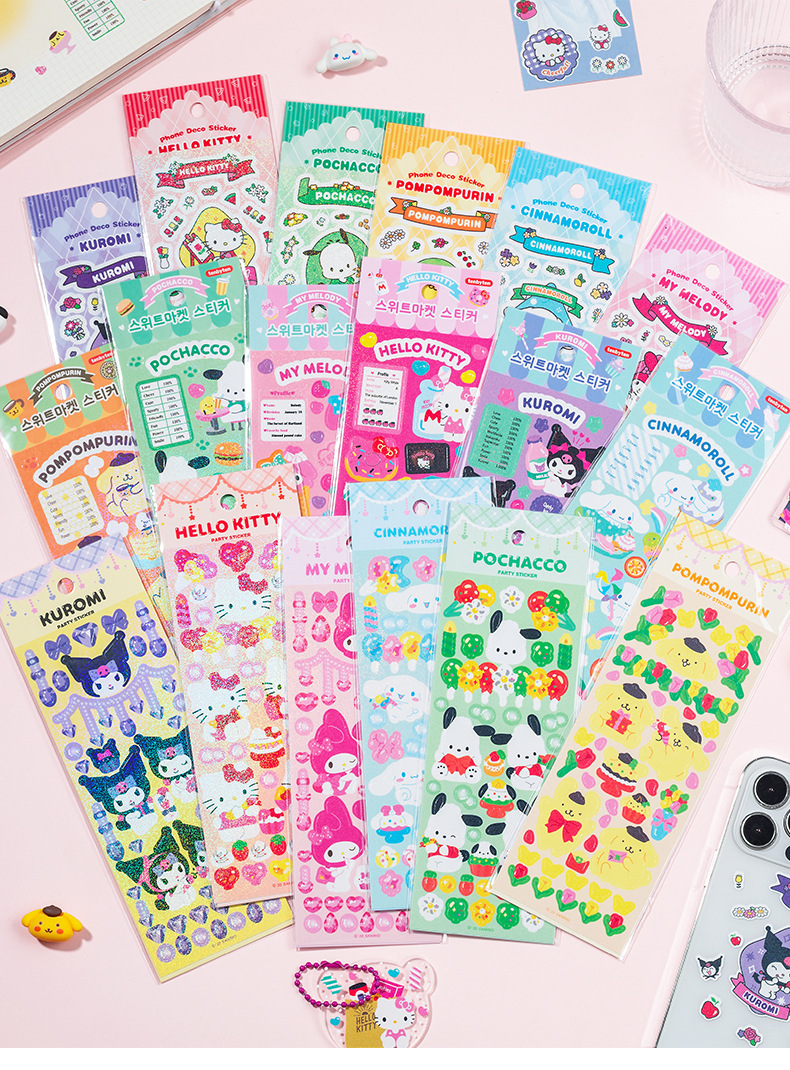 SL-37 산리오 18 레이저 만화 방수 goo 카드 스티커 DIY 귀여운 동물 손 계정 장식 재료 텍스트스토어 가기