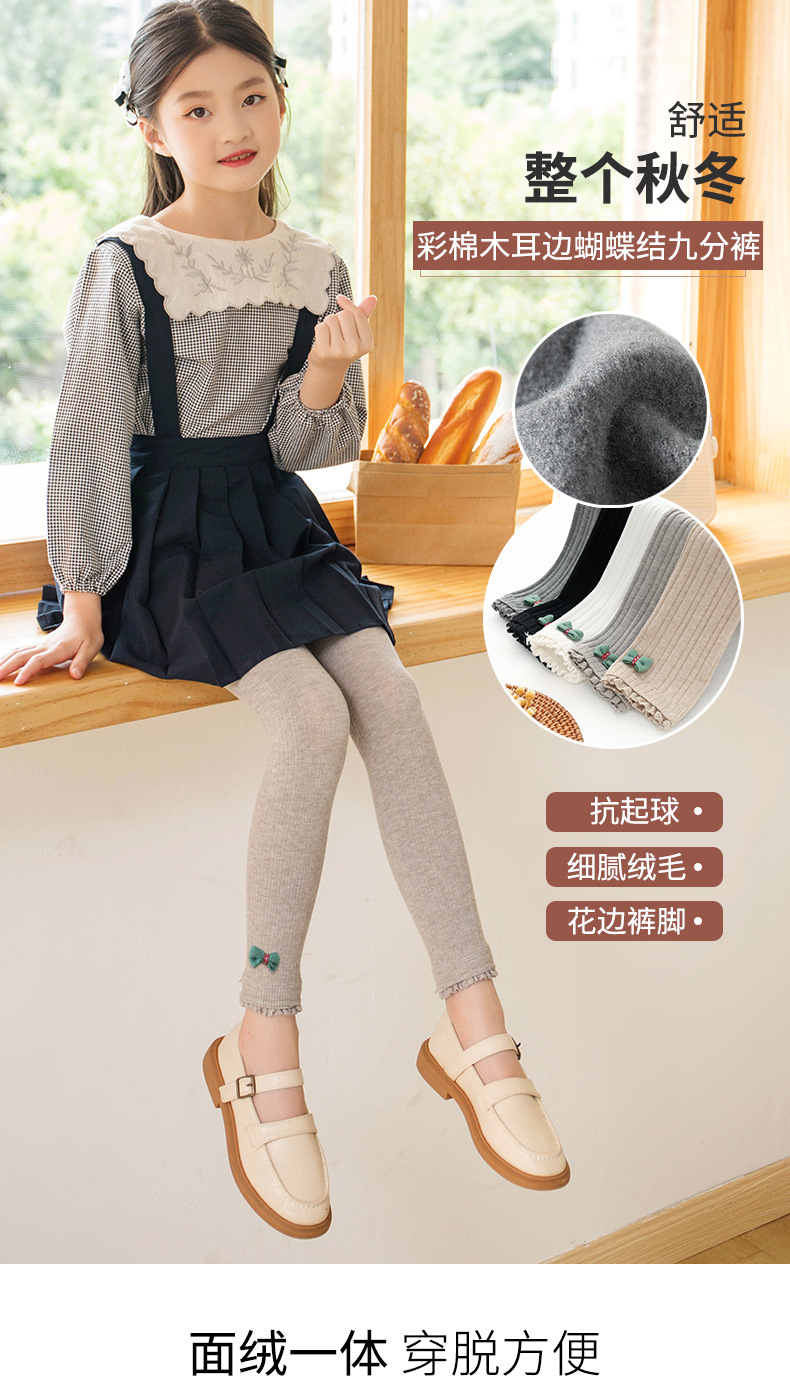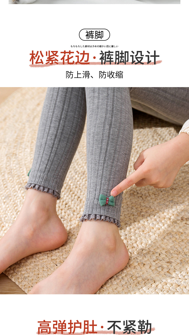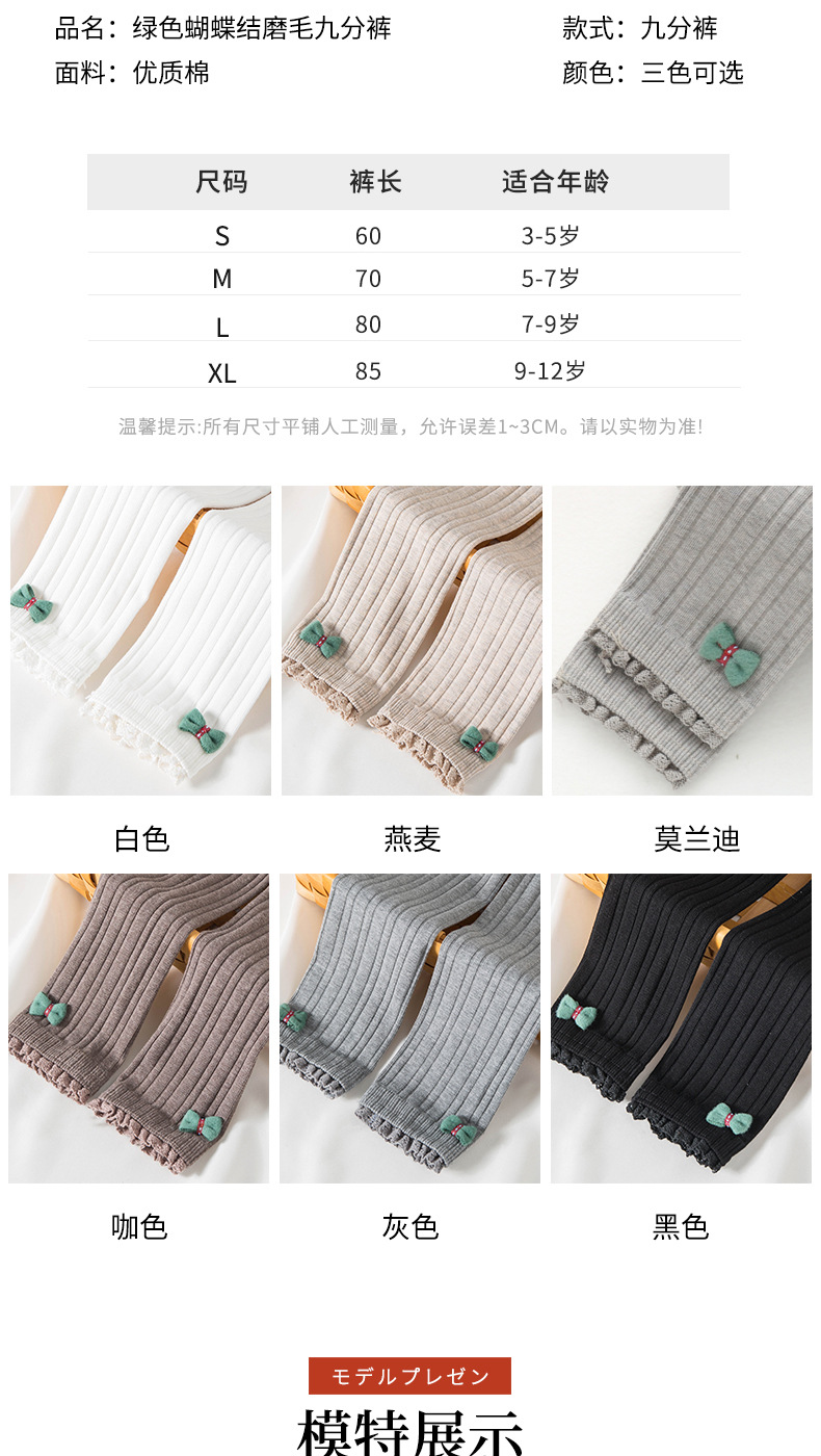 봄, 가을 여아용 그린 보우 아동용 레깅스, 벨벳 면바지, 겨울용 두꺼운 따뜻한 9부 팬츠스토어 가기