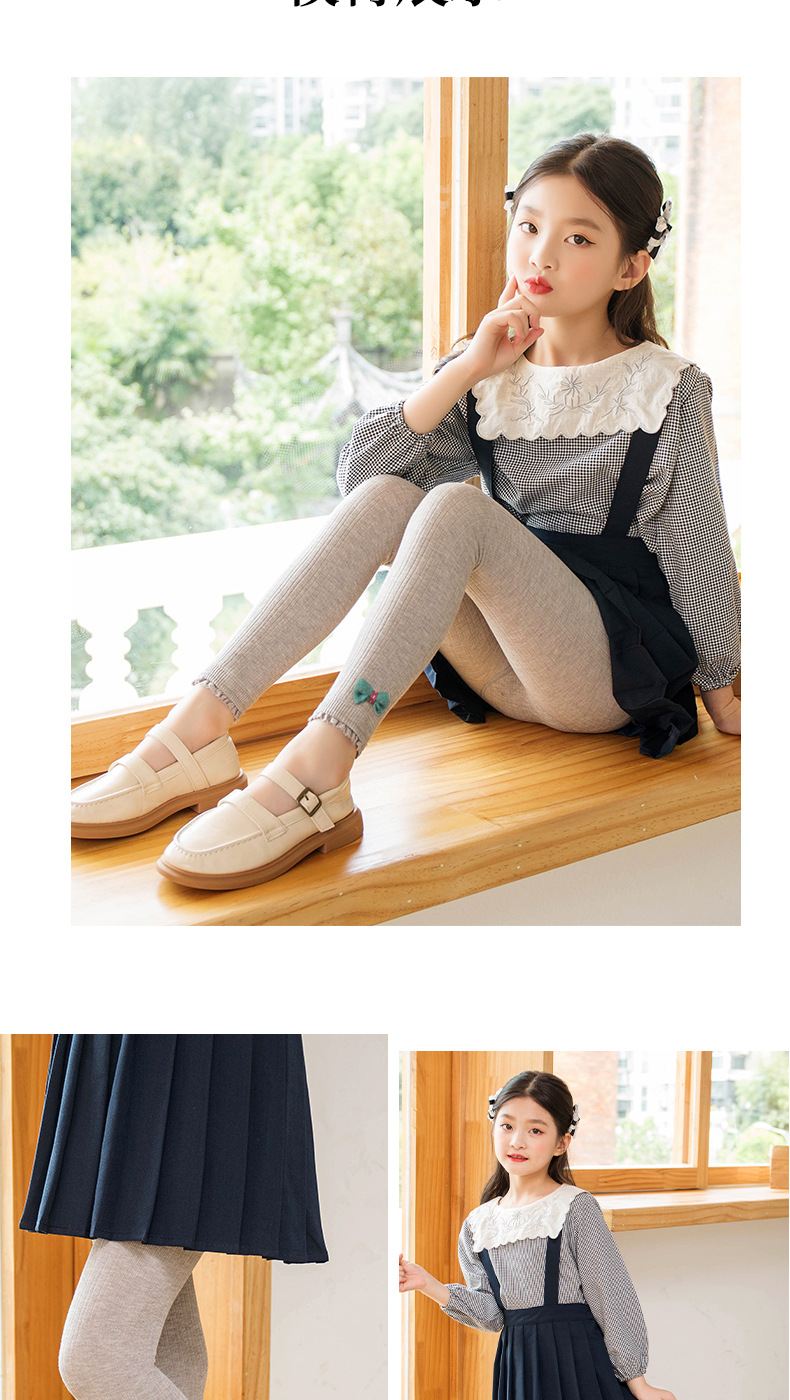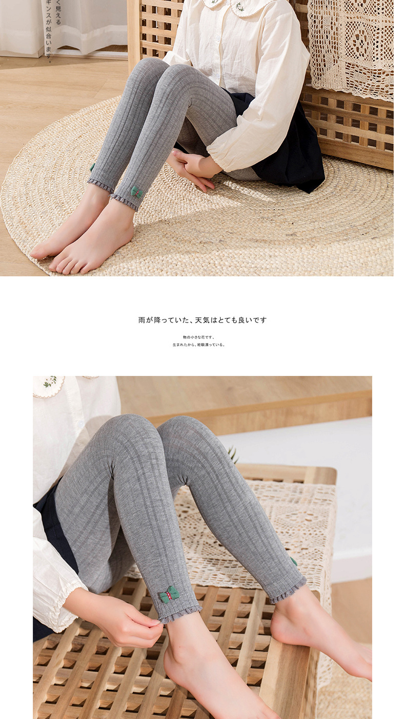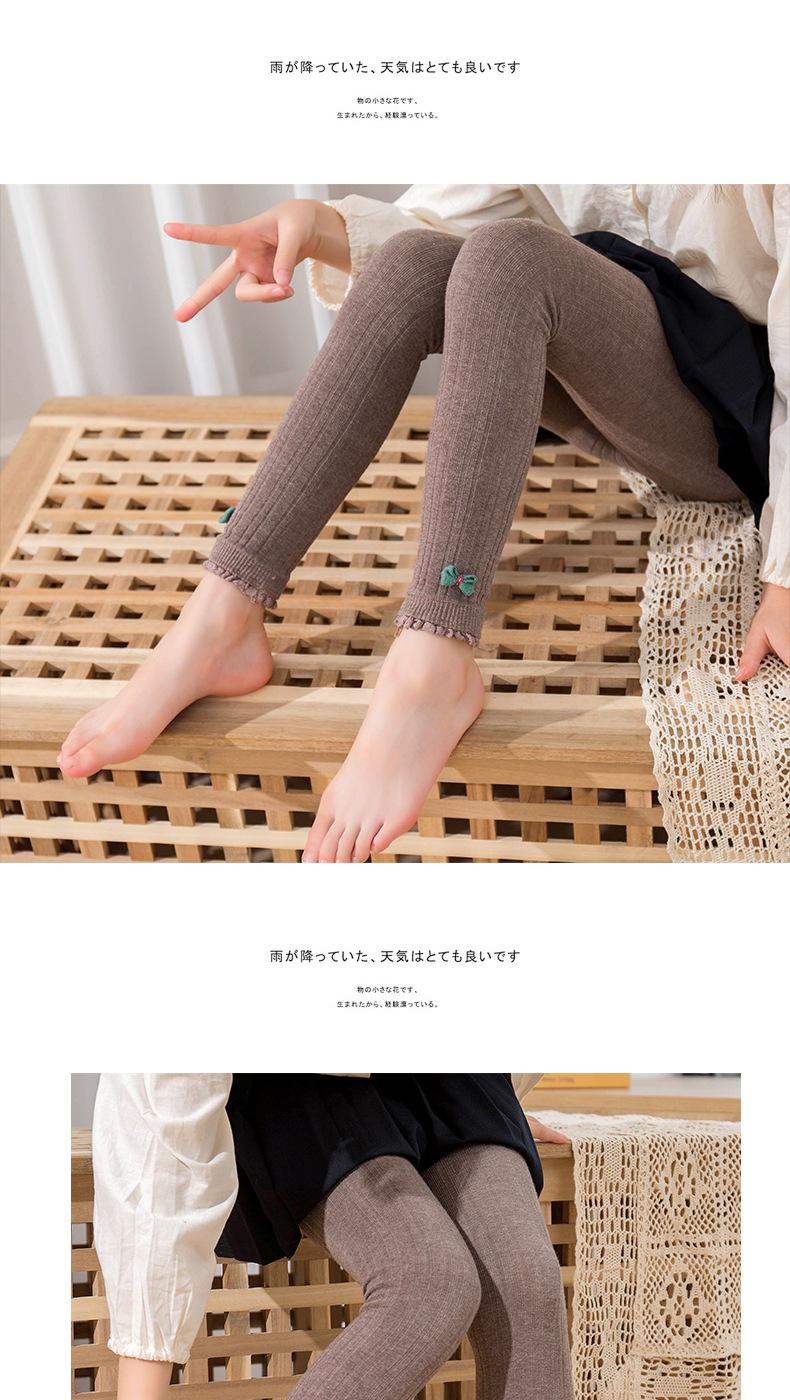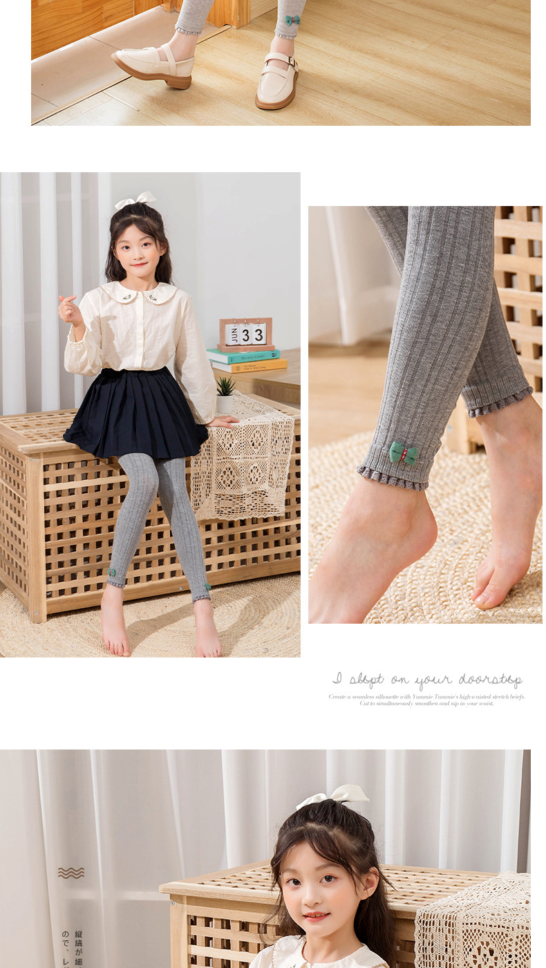 봄, 가을 여아용 그린 보우 아동용 레깅스, 벨벳 면바지, 겨울용 두꺼운 따뜻한 9부 팬츠스토어 가기