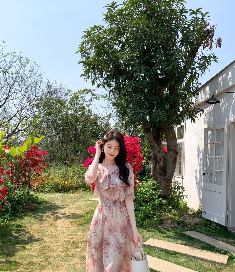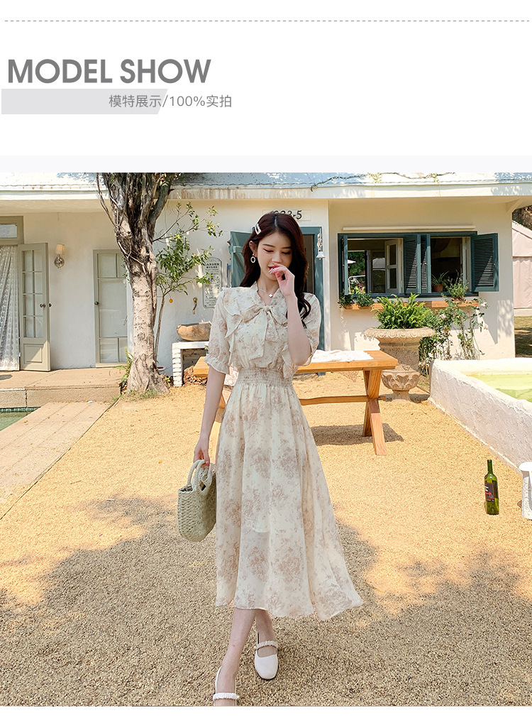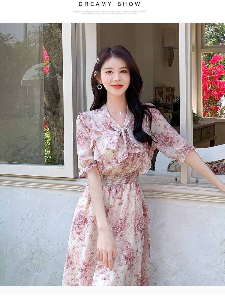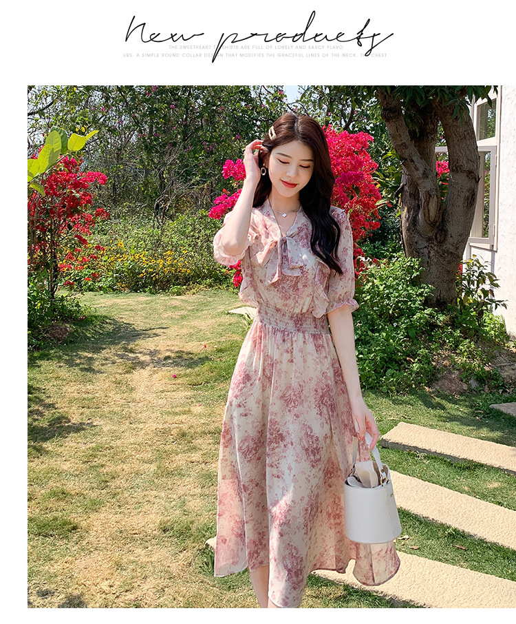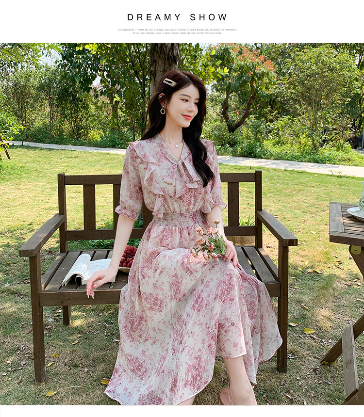 유럽과 미국의 여름 얇은 달콤한 프릴 반팔 꽃 무늬 스커트 여성 쉬폰 느슨한 대형 부드러운 스타일 드레스스토어 가기