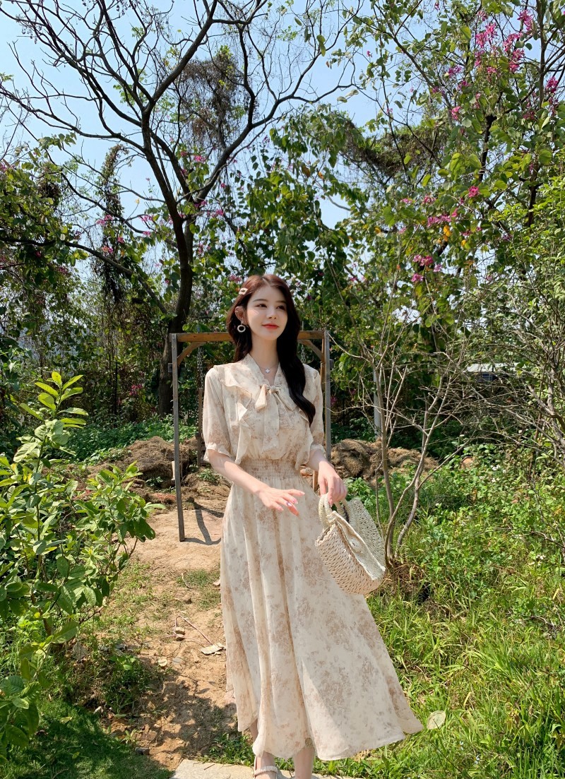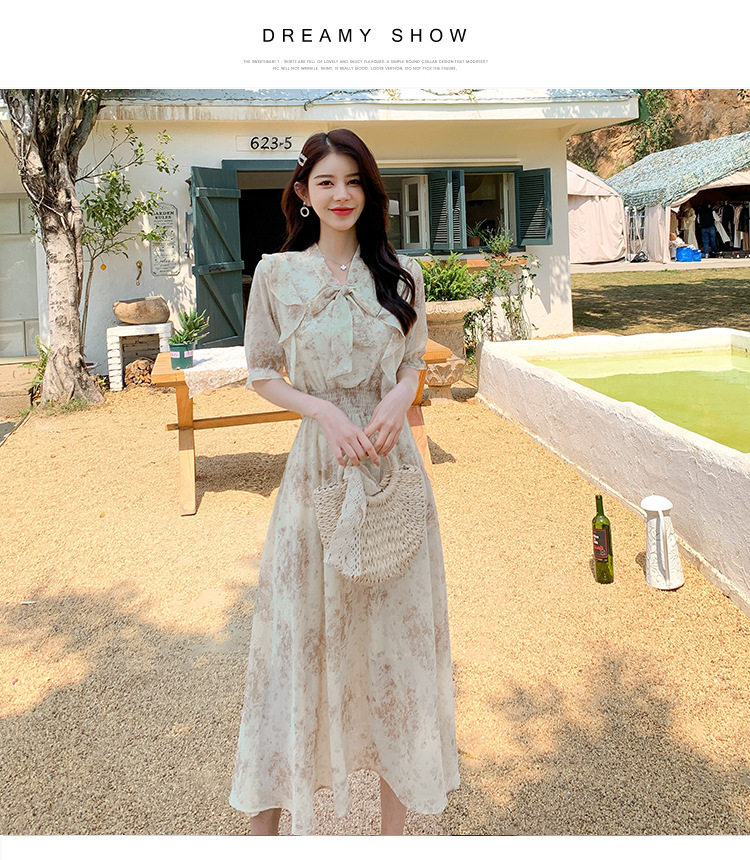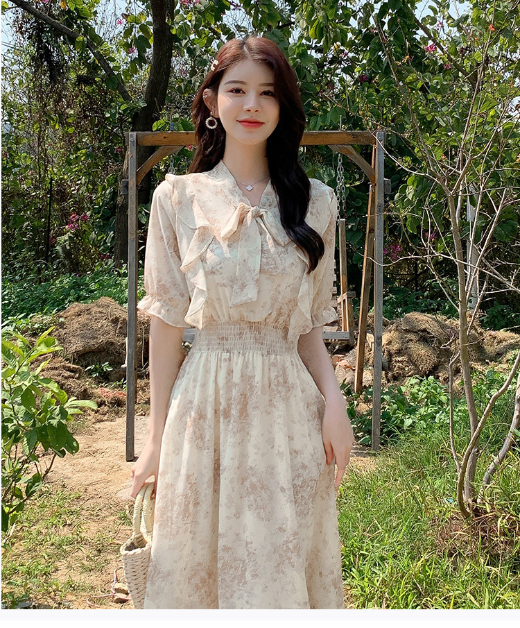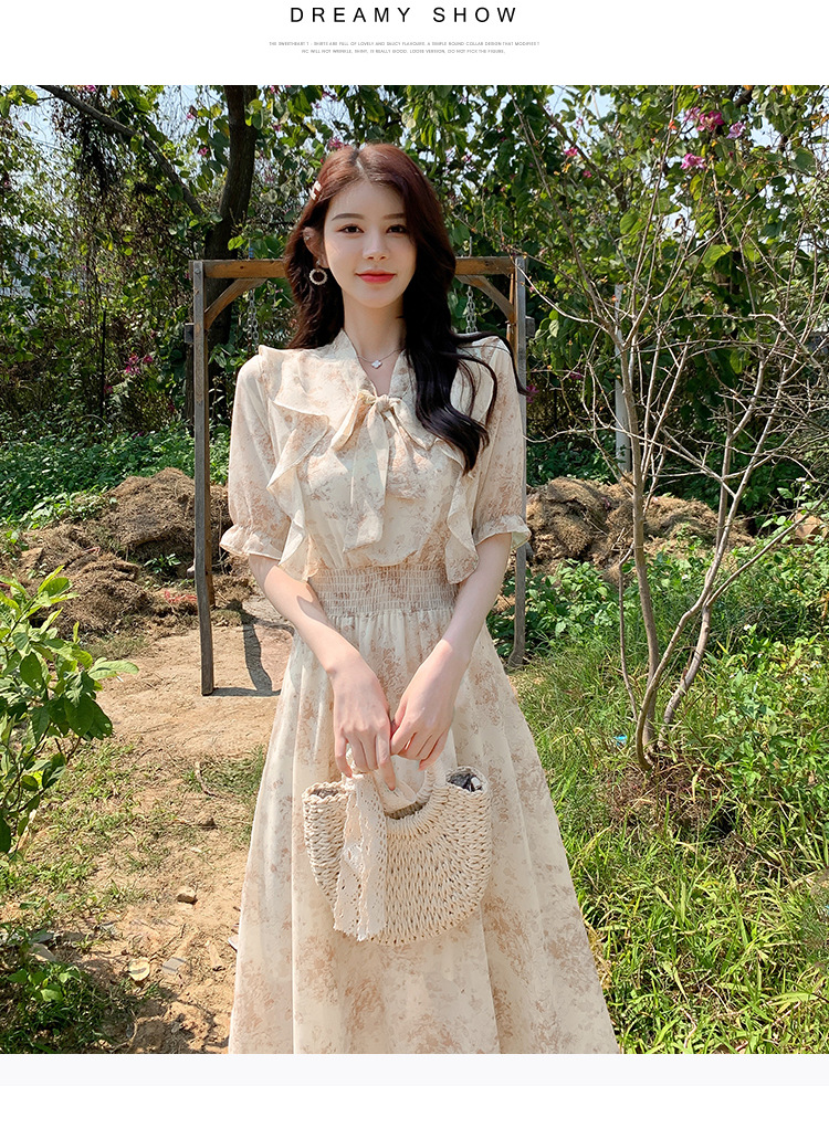 유럽과 미국의 여름 얇은 달콤한 프릴 반팔 꽃 무늬 스커트 여성 쉬폰 느슨한 대형 부드러운 스타일 드레스스토어 가기