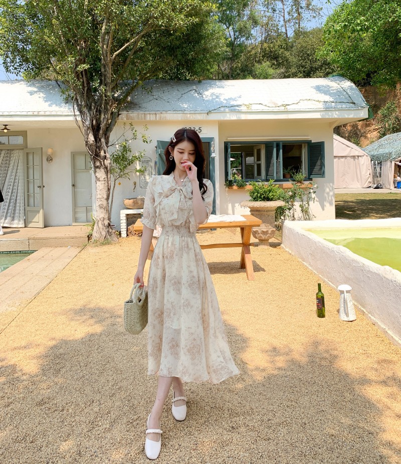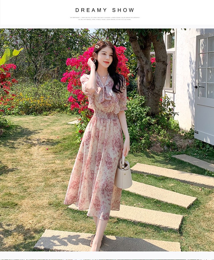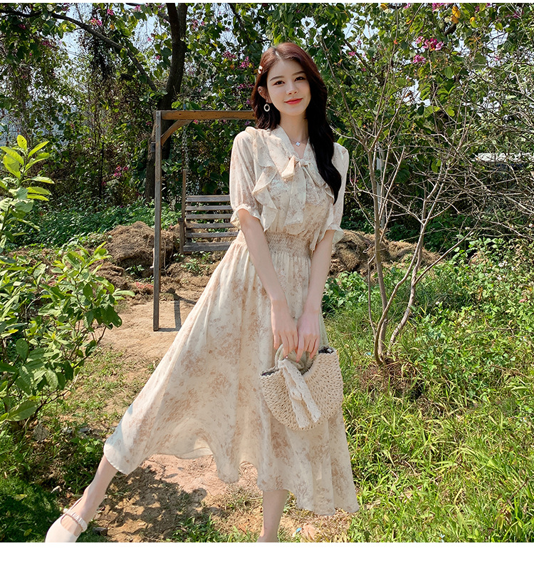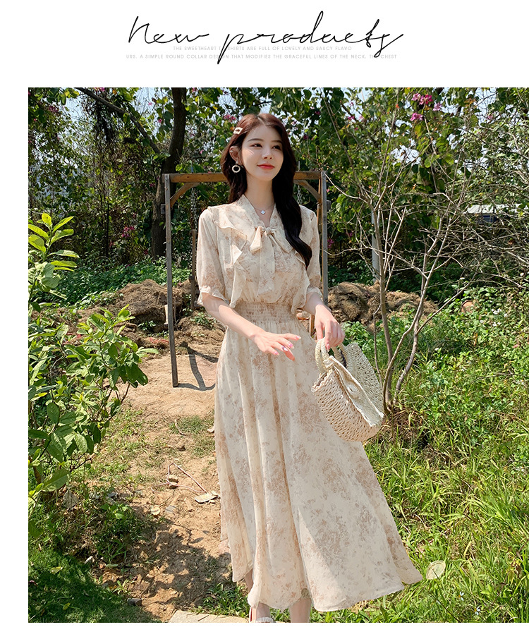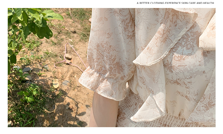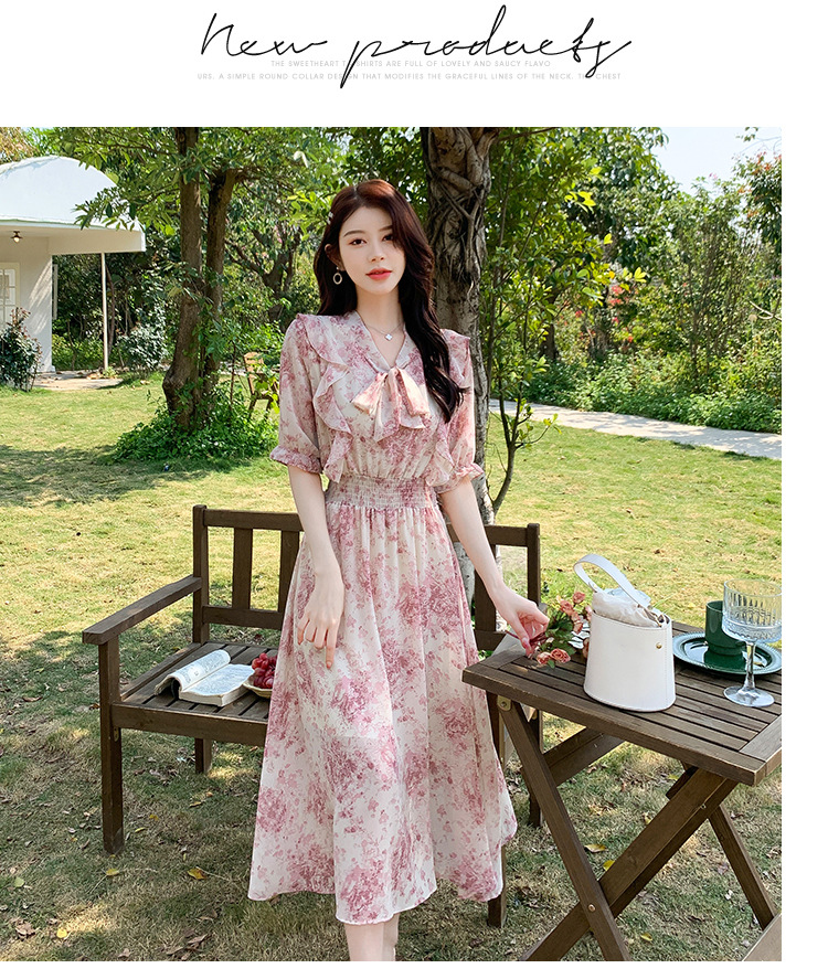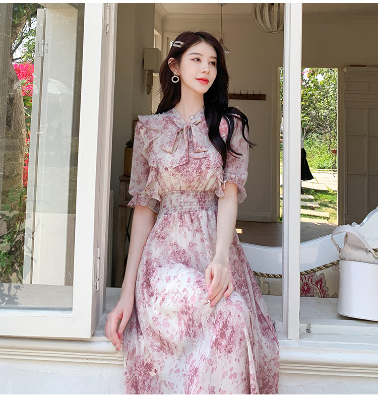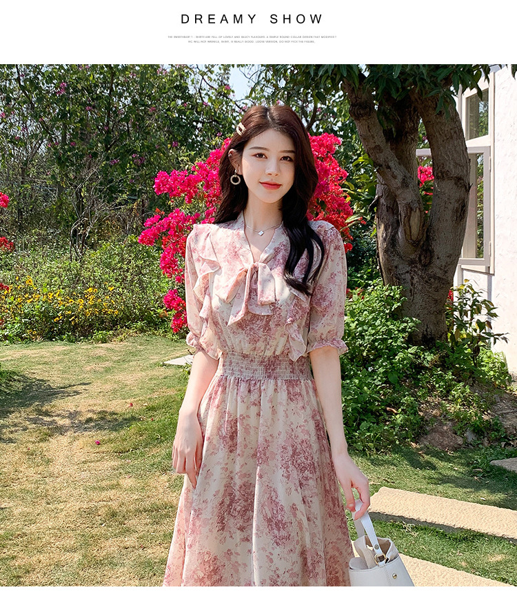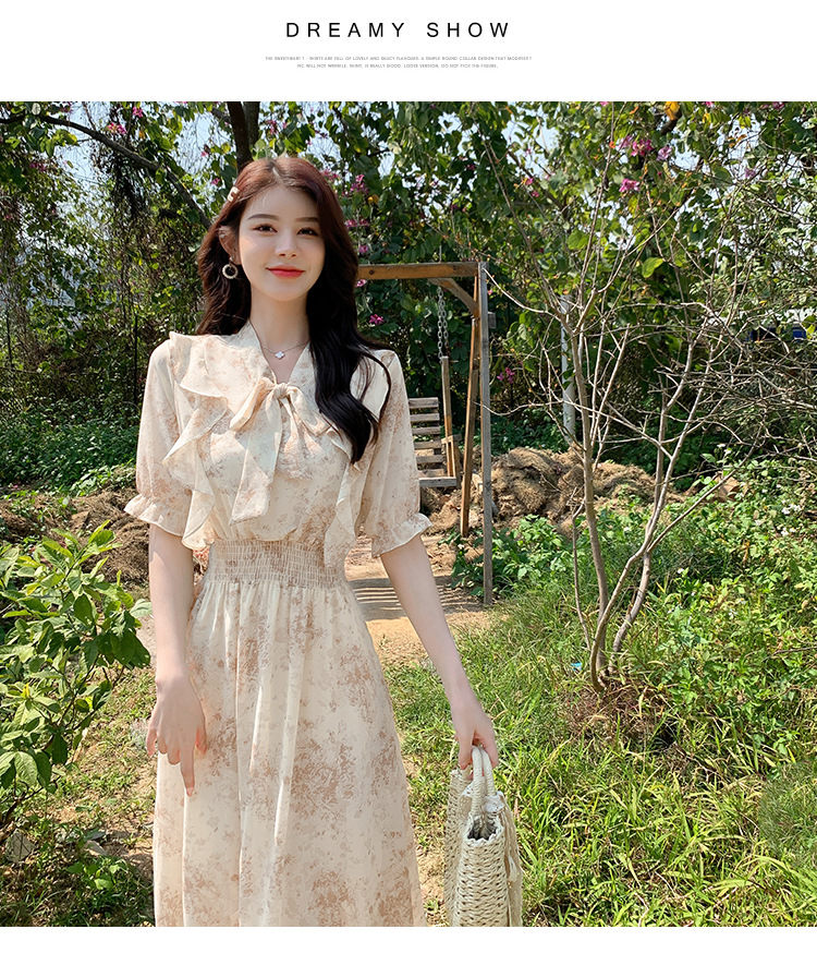 유럽과 미국의 여름 얇은 달콤한 프릴 반팔 꽃 무늬 스커트 여성 쉬폰 느슨한 대형 부드러운 스타일 드레스