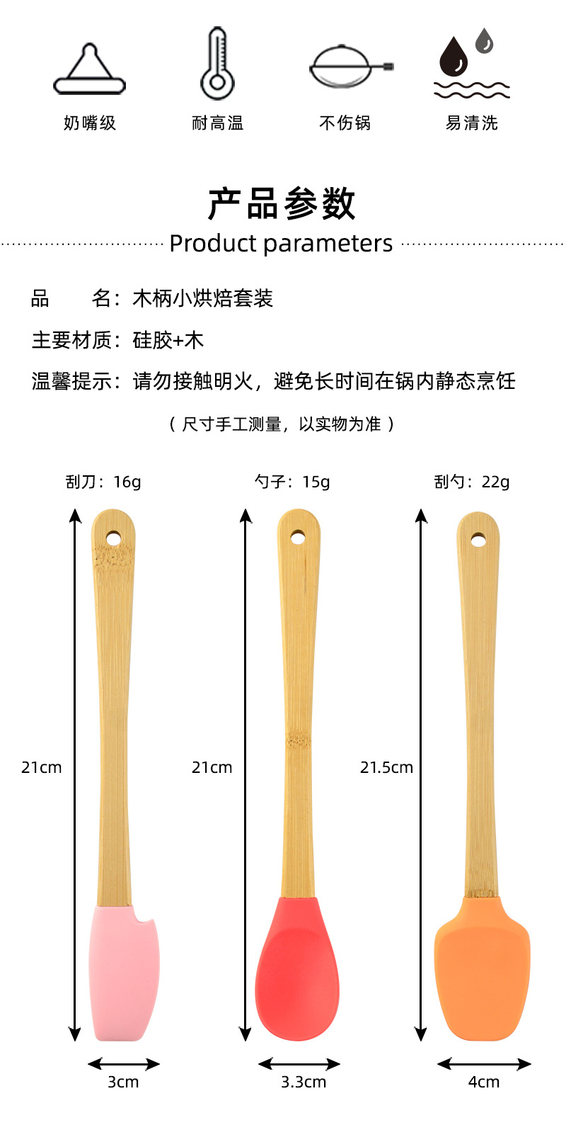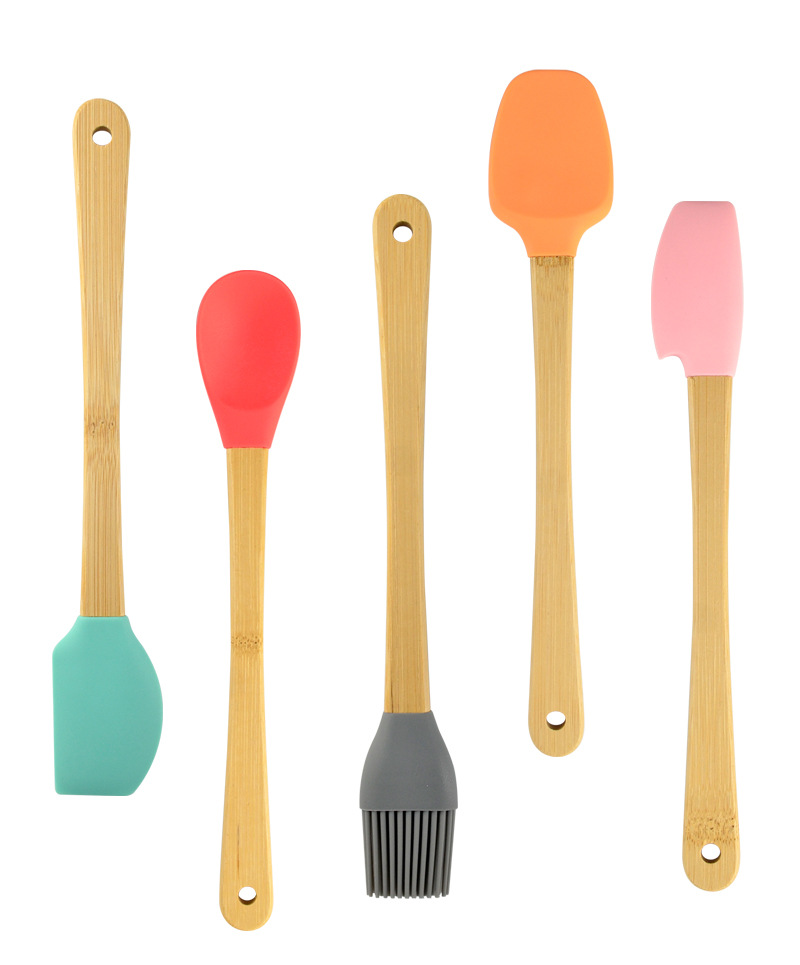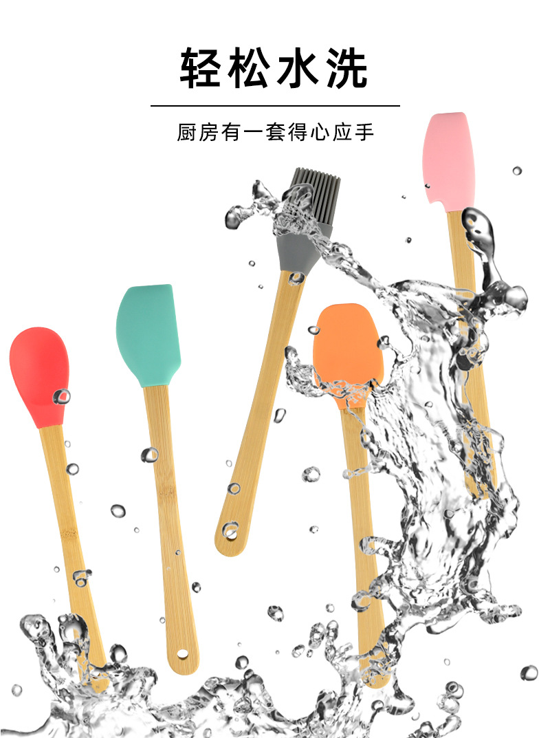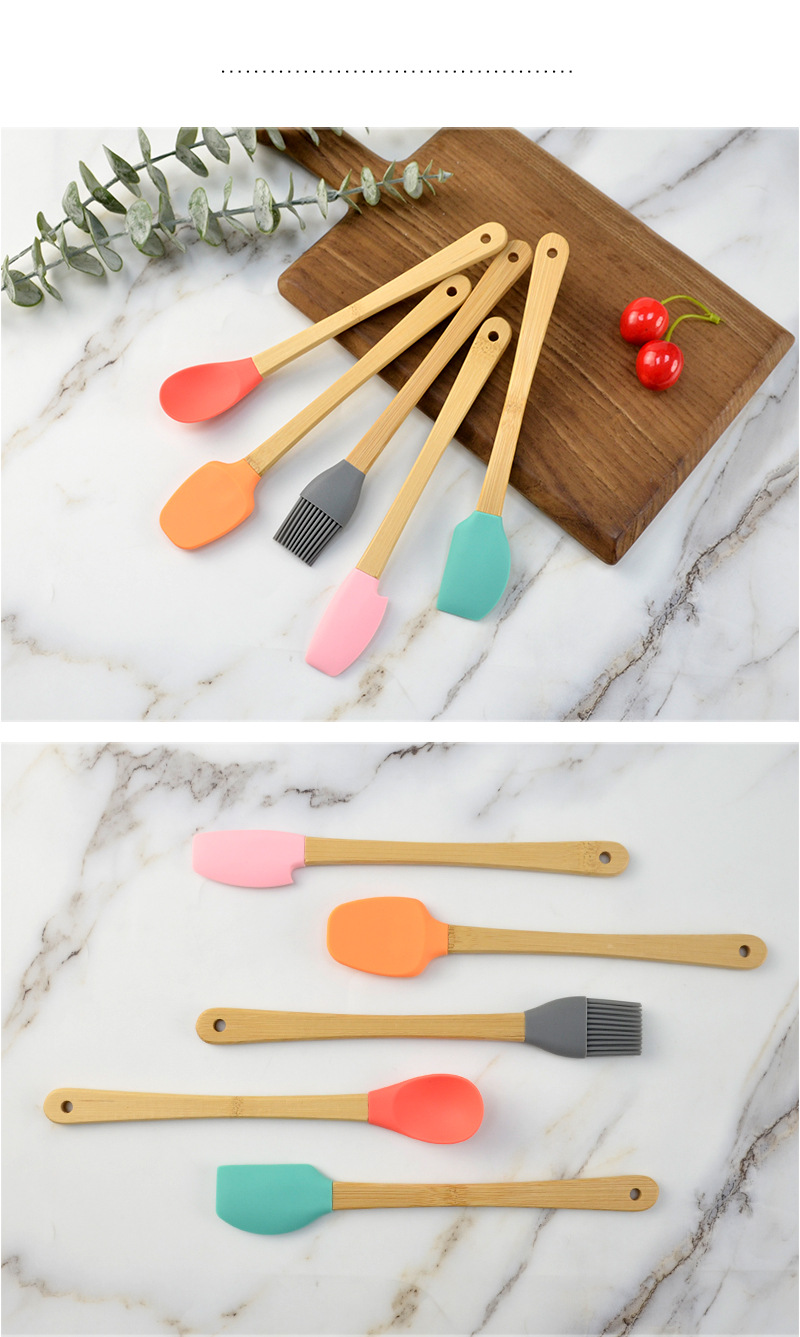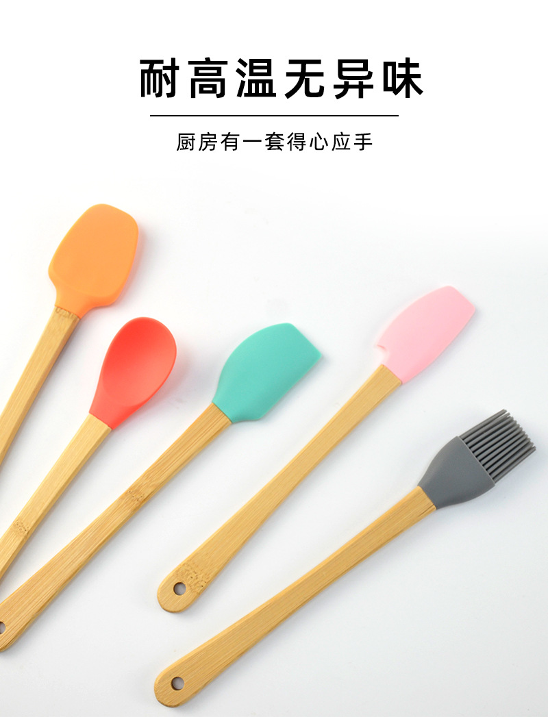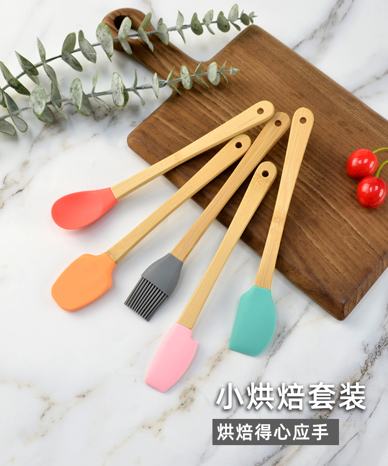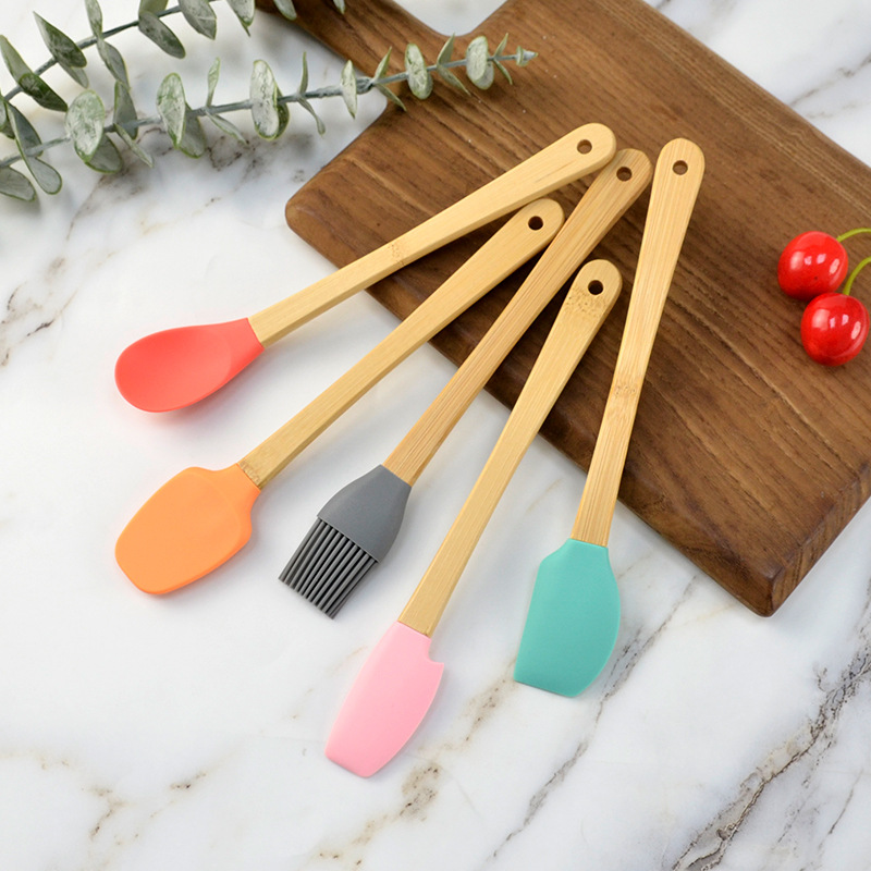 어린이 나무 손잡이 실리콘 작은 주방 용품 미니 베이킹 도구 색상 5 개 세트 실리콘 주걱 오일 브러쉬