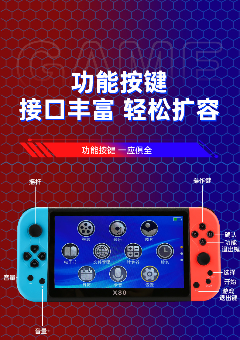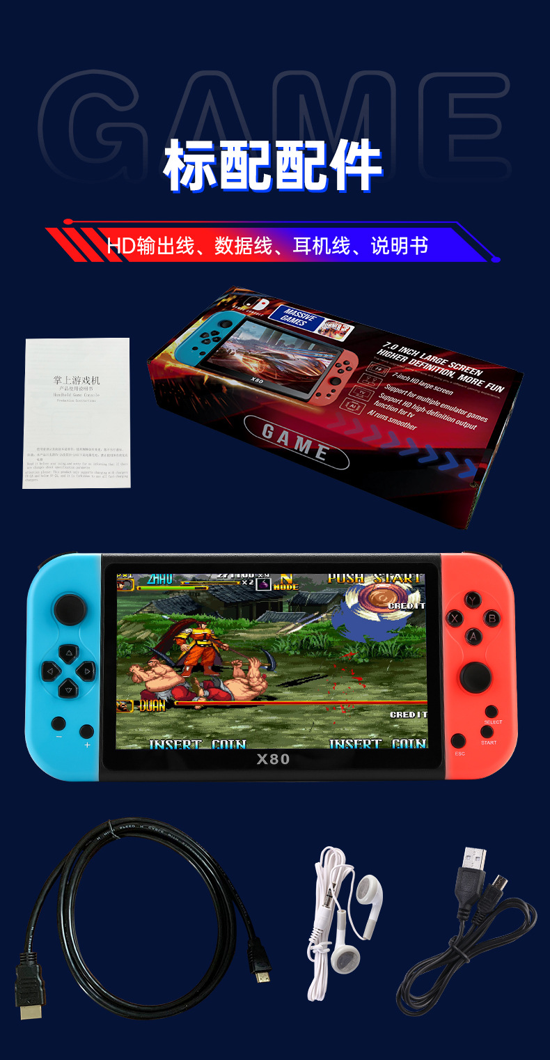 국경 간 전자 상거래 새로운 7 인치 대형 스크린 핸드 헬드 게임 X80 아케이드 PS1 시뮬레이터 HD 출력 PSP 핸드 헬드