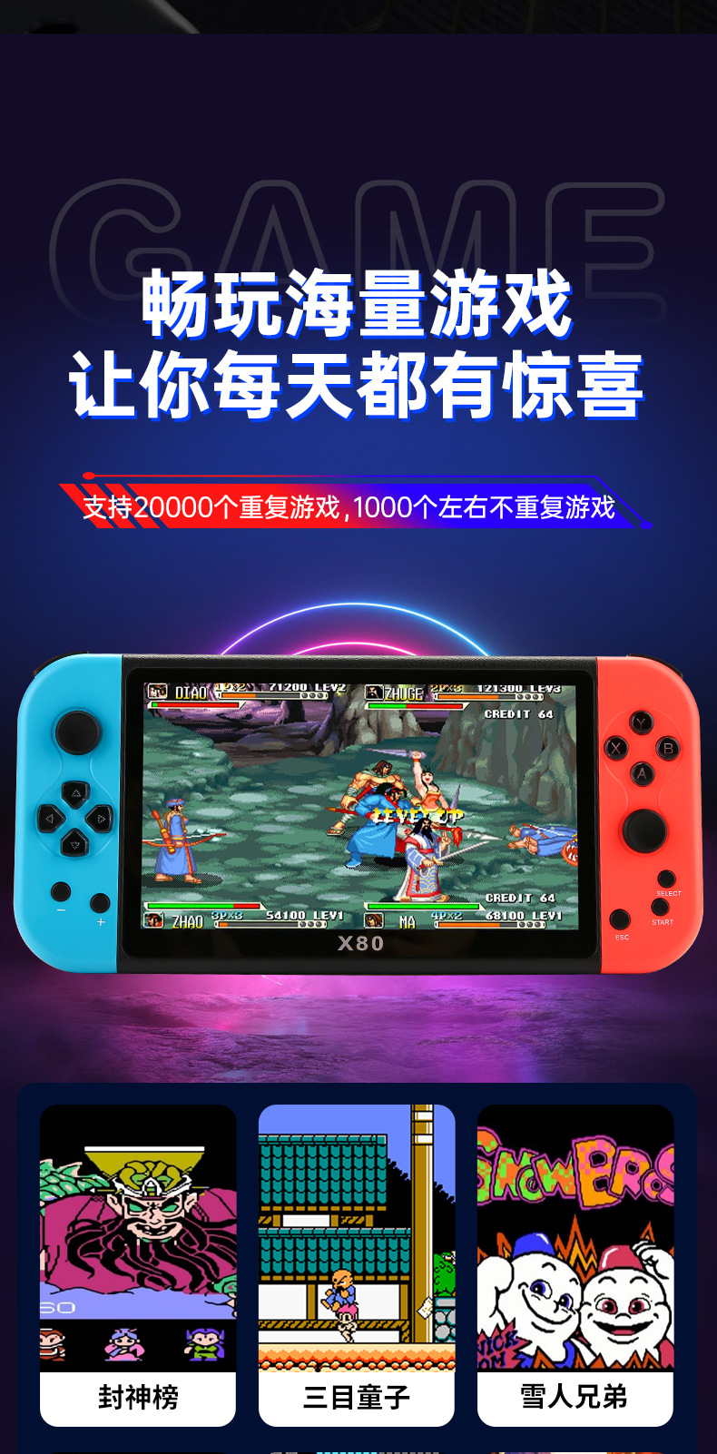 국경 간 전자 상거래 새로운 7 인치 대형 스크린 핸드 헬드 게임 X80 아케이드 PS1 시뮬레이터 HD 출력 PSP 핸드 헬드스토어 가기