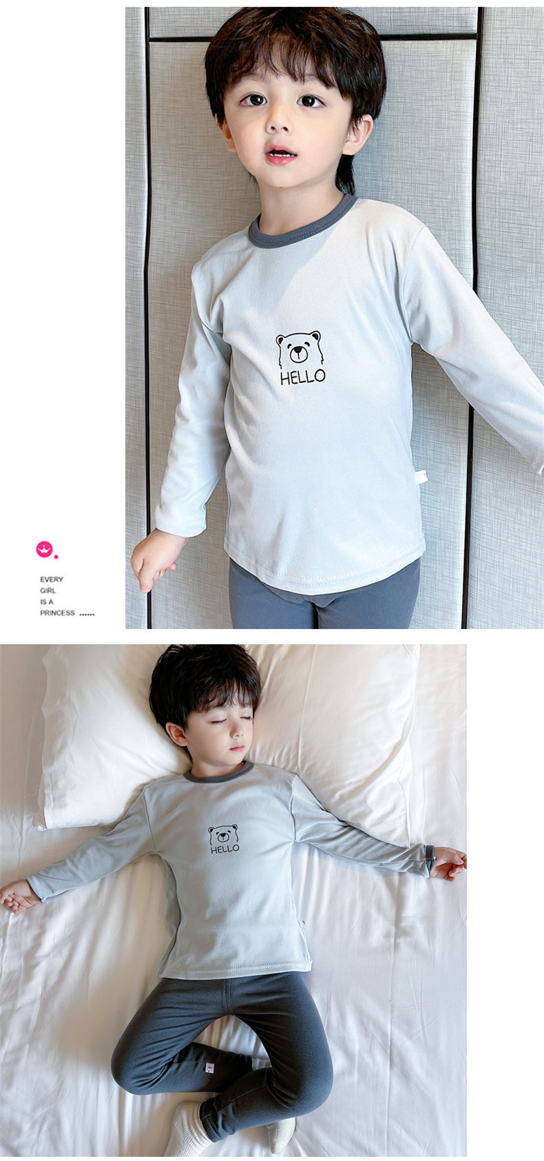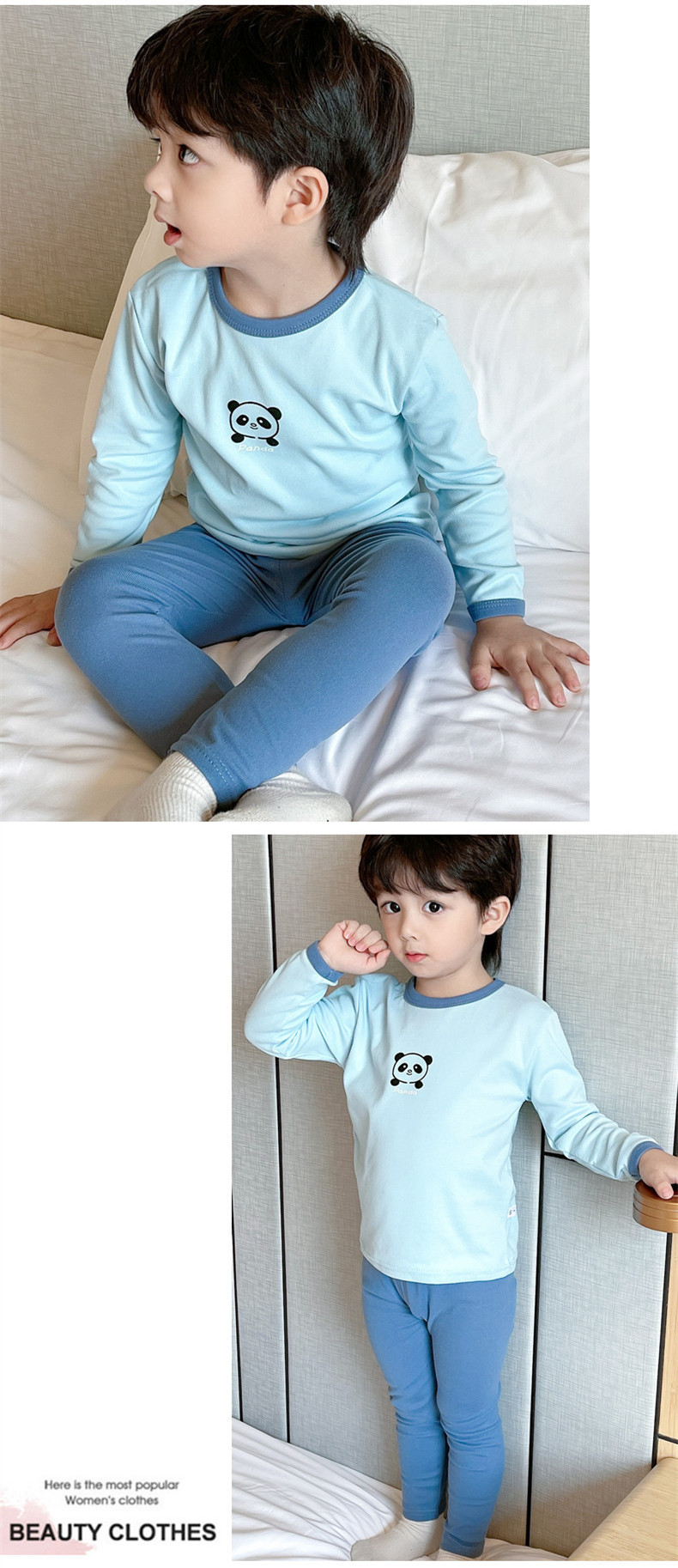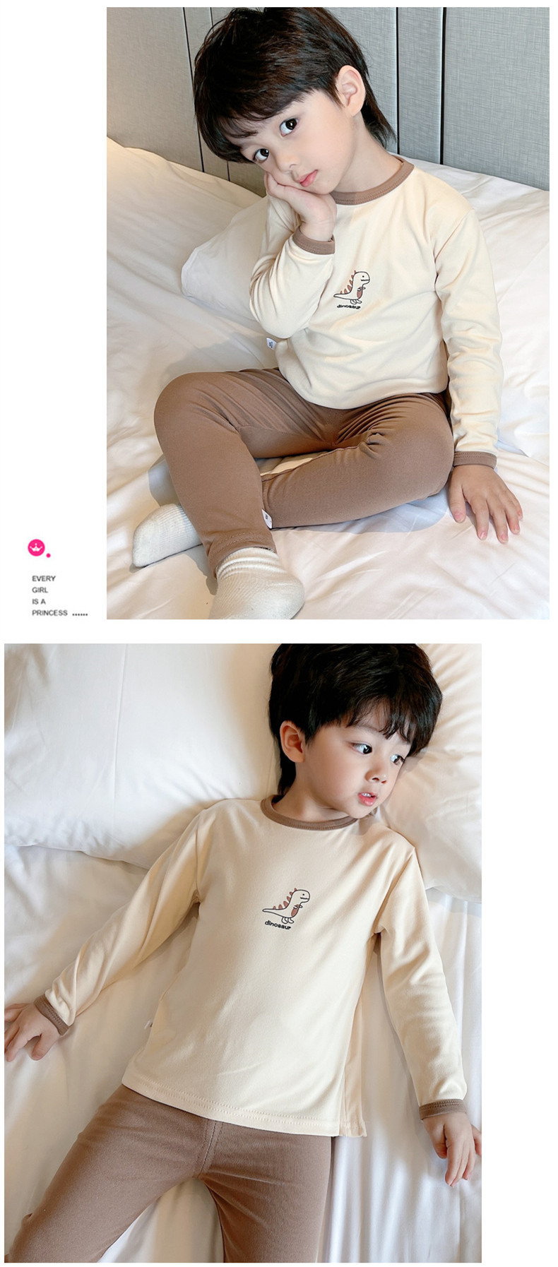 봄, 가을 소년 소녀 가정복 어린이 잠옷 세트 아기 속옷 소형, 중형 및 대형 어린이 가을, 겨울 독일 벨벳 가을 옷과 긴 바지스토어 가기