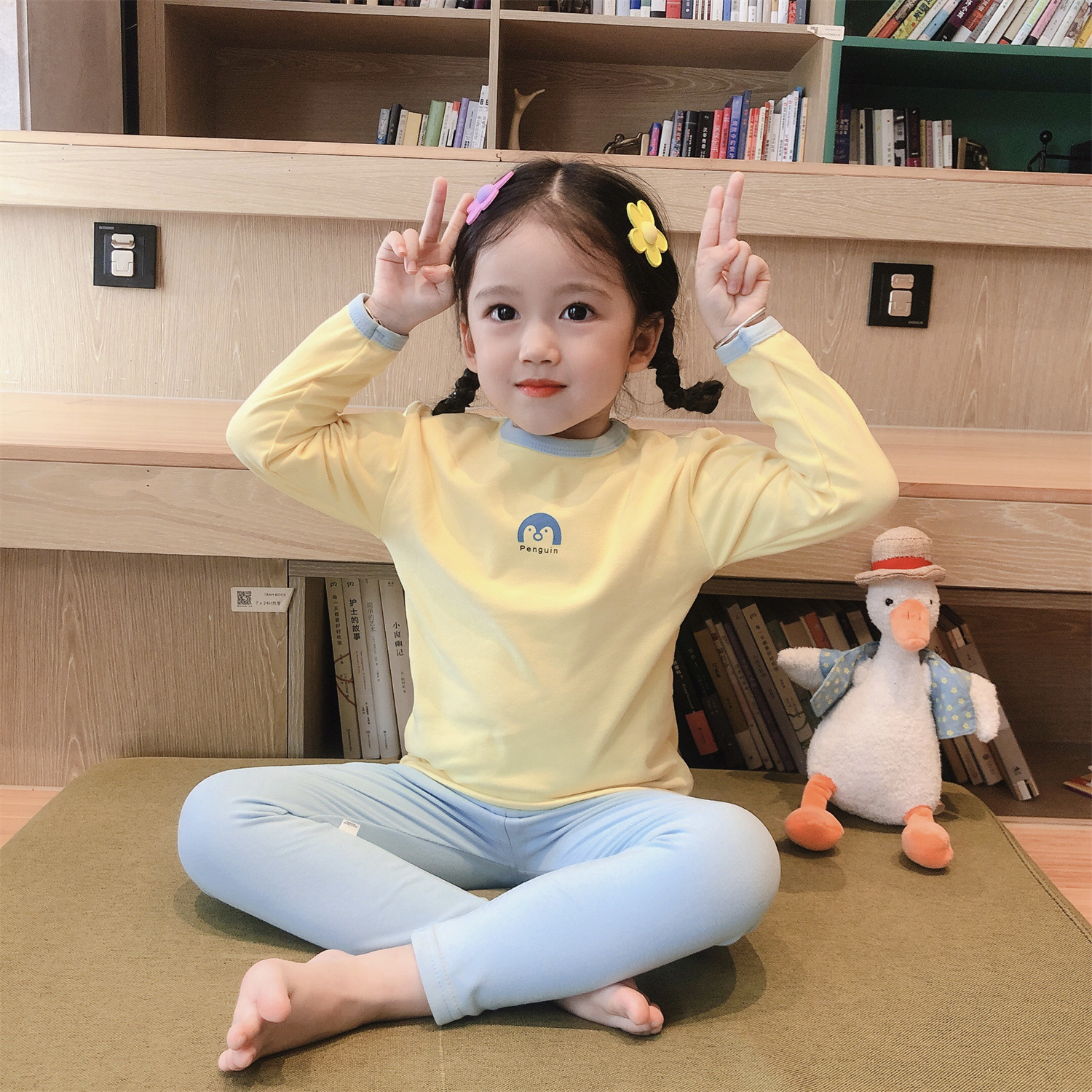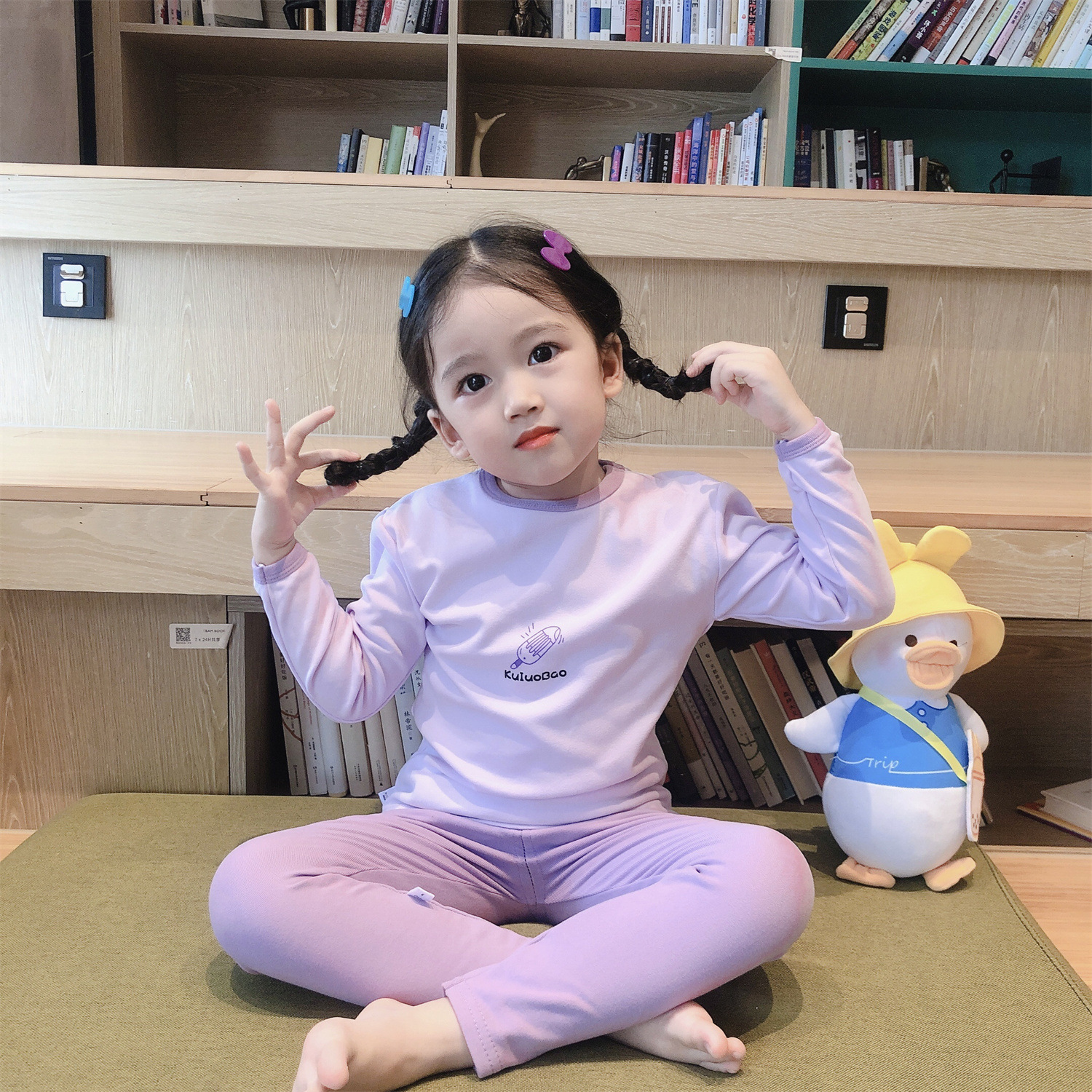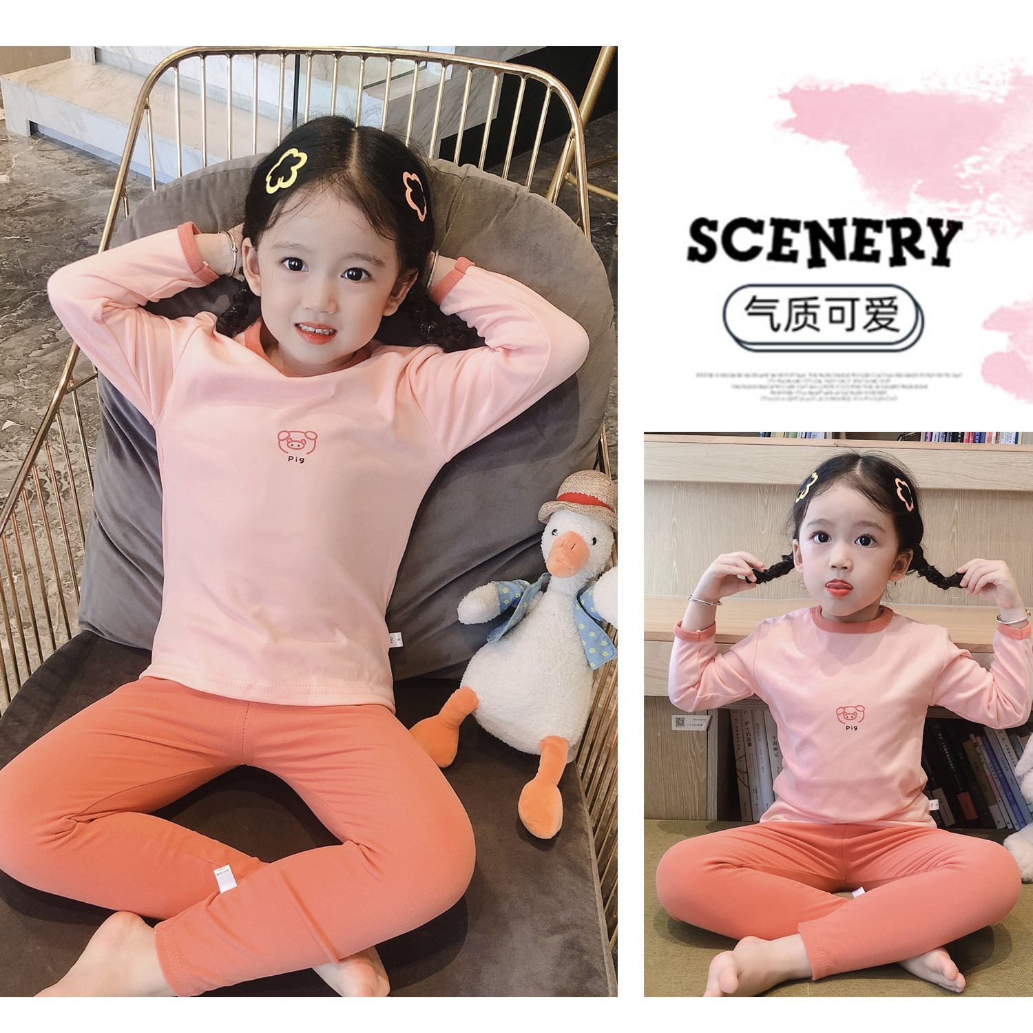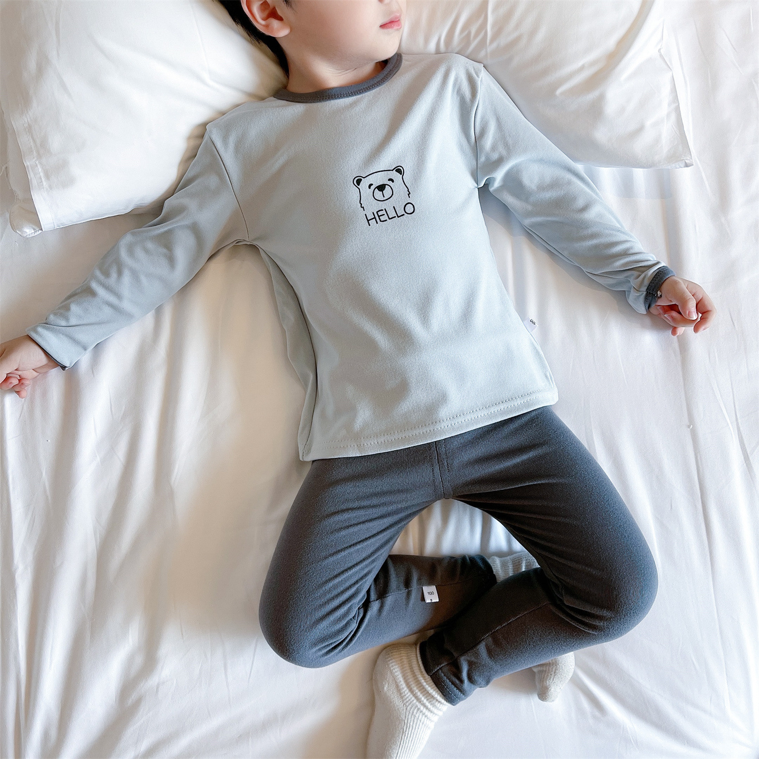 봄, 가을 소년 소녀 가정복 어린이 잠옷 세트 아기 속옷 소형, 중형 및 대형 어린이 가을, 겨울 독일 벨벳 가을 옷과 긴 바지스토어 가기