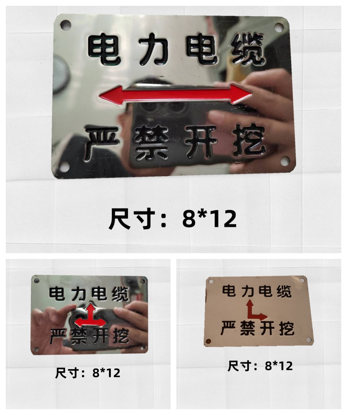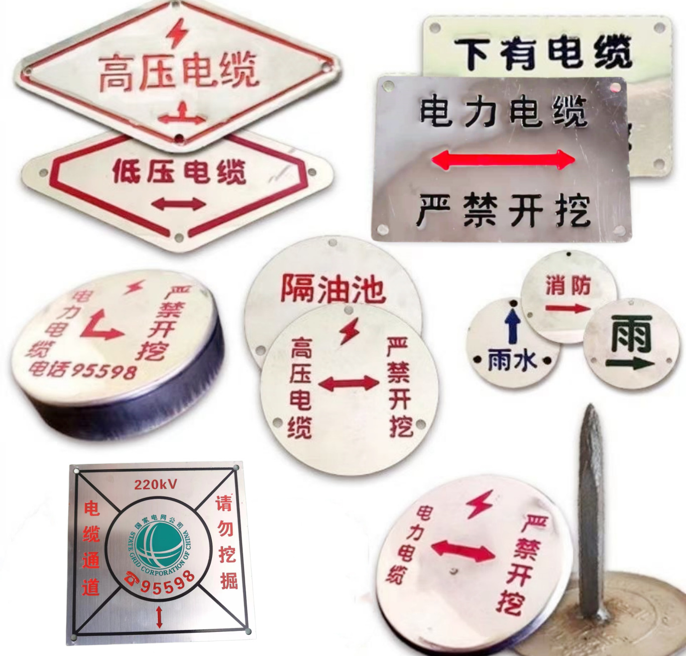 스테인레스 스틸 트렌드 플레이트 전원 케이블 식별 플레이트 가스 급수 파이프라인 식별 맨홀 커버 사인 부식 표시