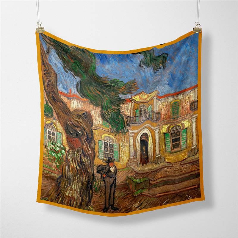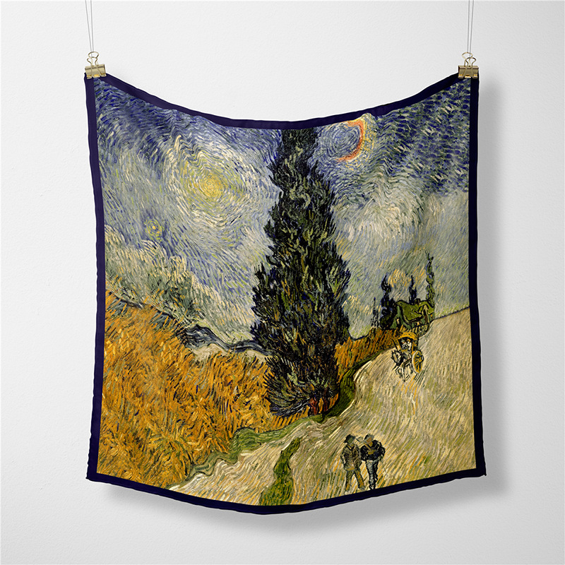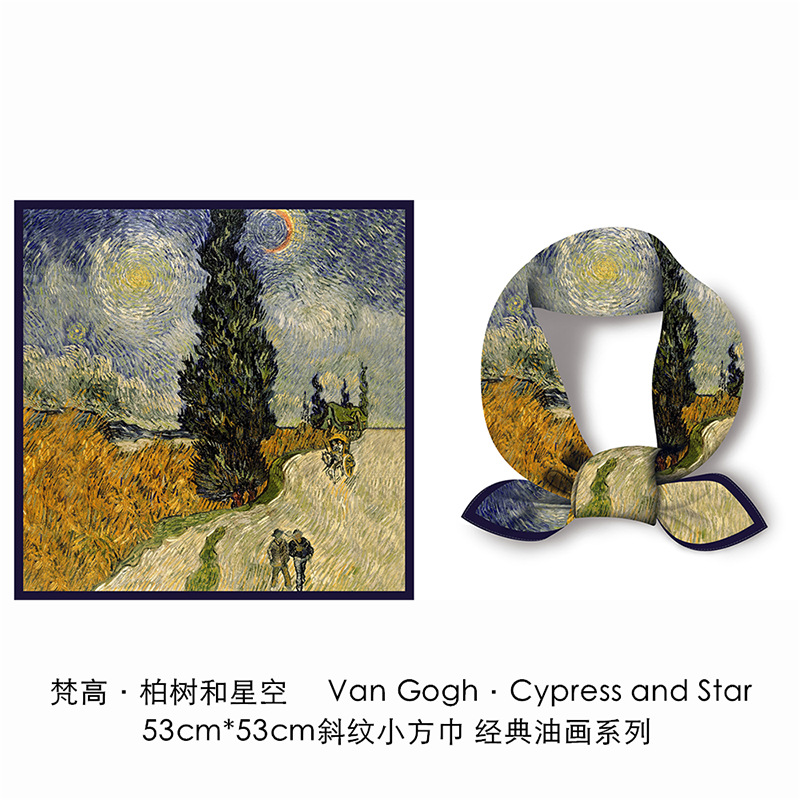 梵高油画丝巾,斜纹绸单面印花,油彩感丰富,有意境!