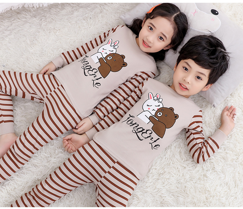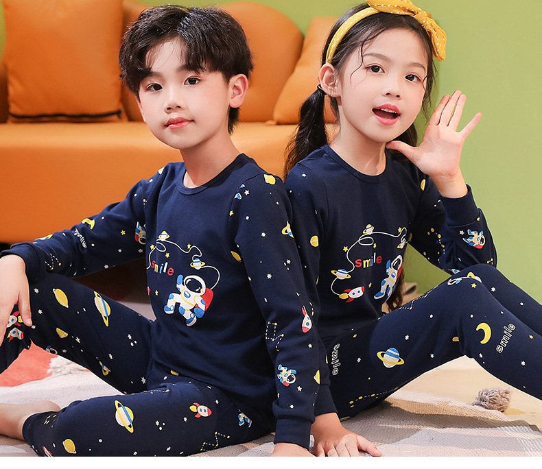 어린이 면 속옷 세트 아기의 면 가을 옷 소년과 소녀를위한 가을 바지 가을 잠옷 가정 의류 어린이 잠옷스토어 가기