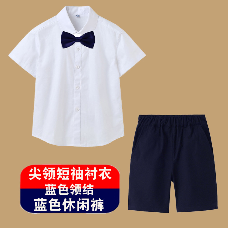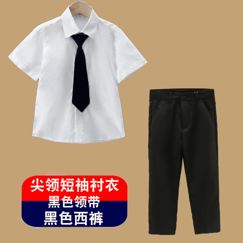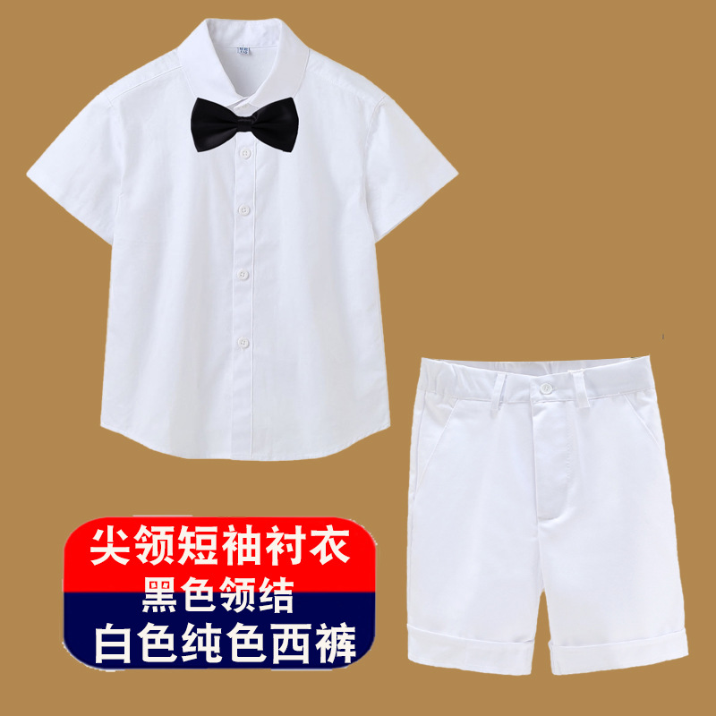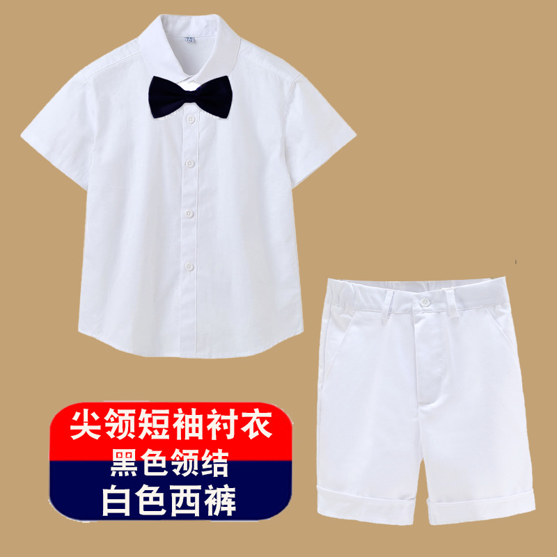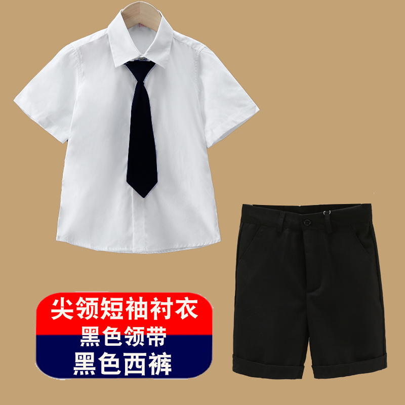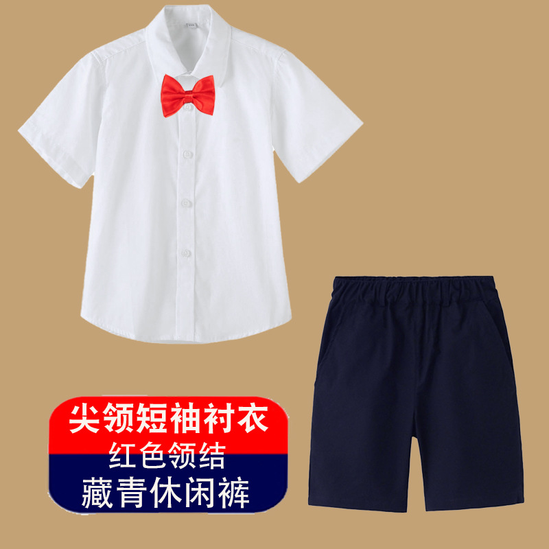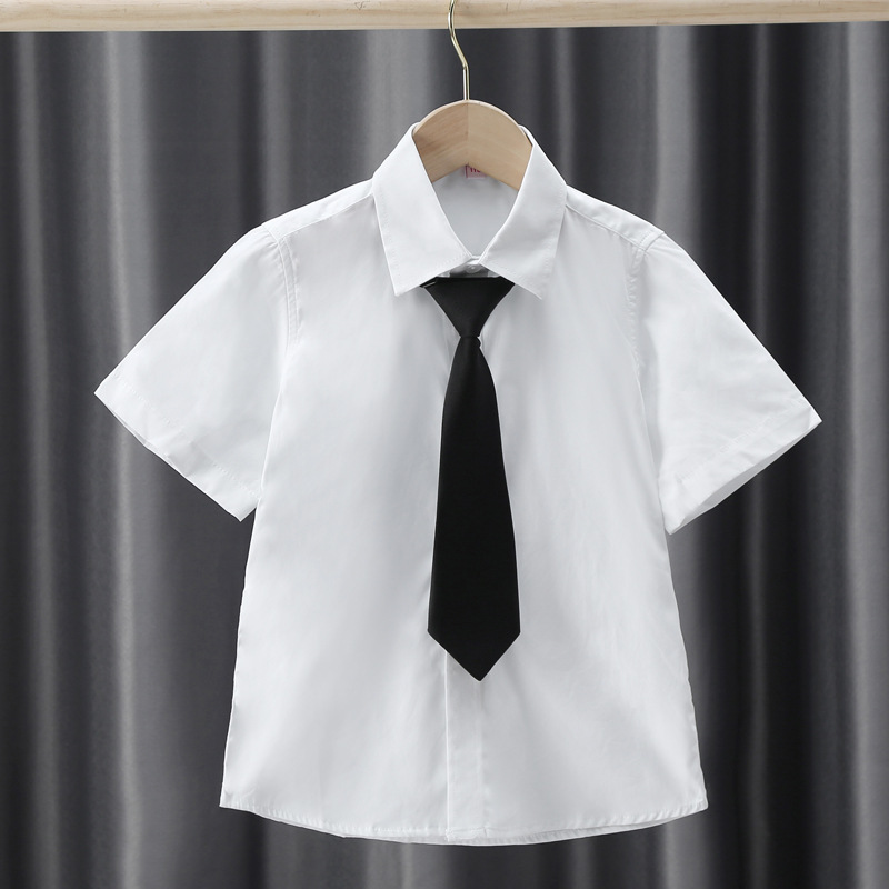 남아용 셔츠, 반팔, 아동용 라펠, 여름 교복, 학급 교복, 공연복, 아동용 흰색 셔츠, 캐주얼하고 활용도가 높은 얇은 스타일스토어 가기