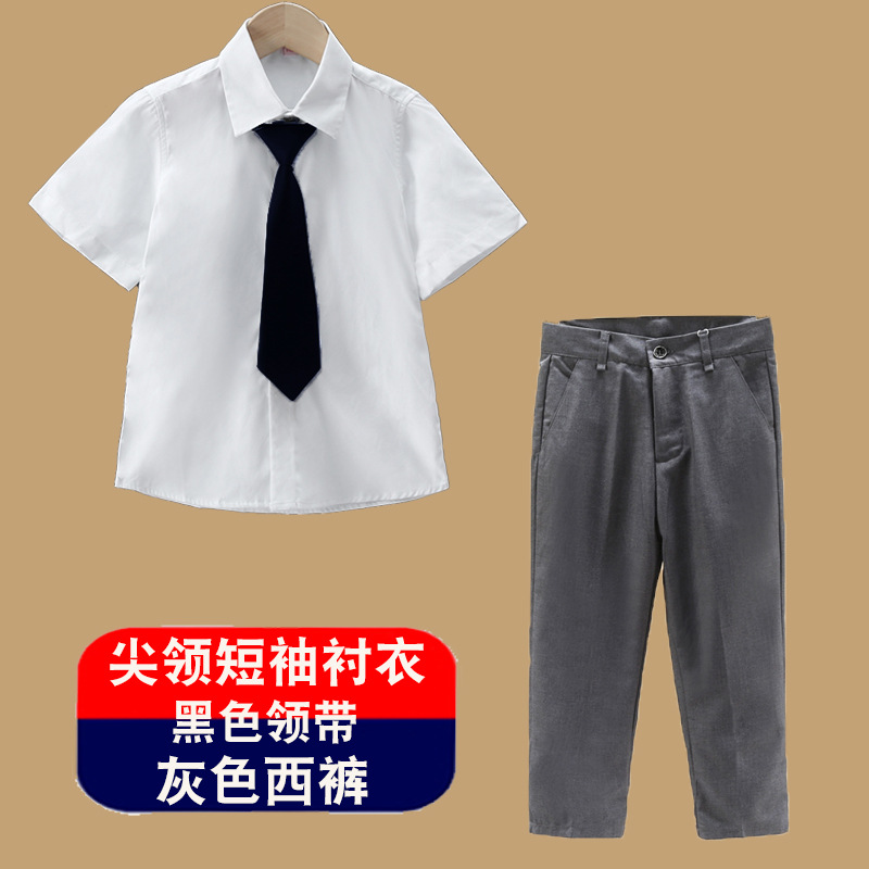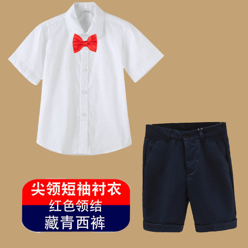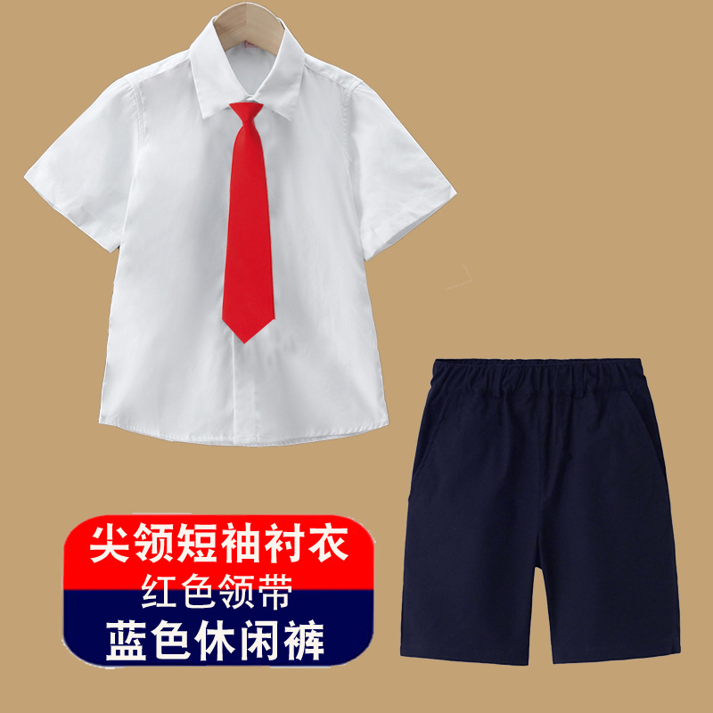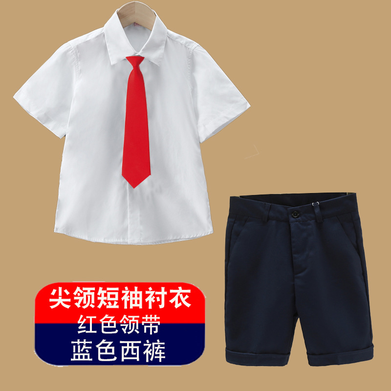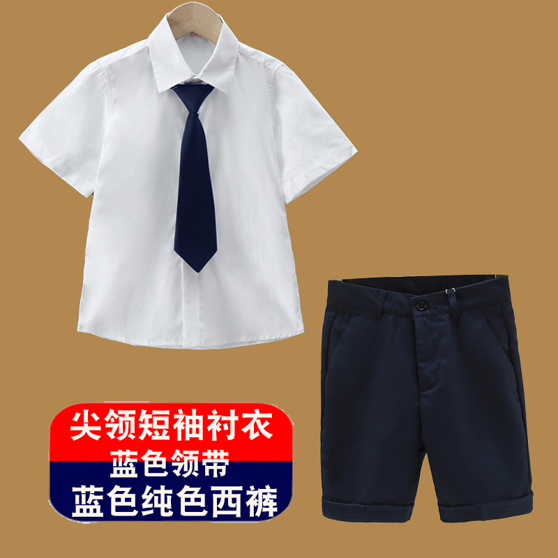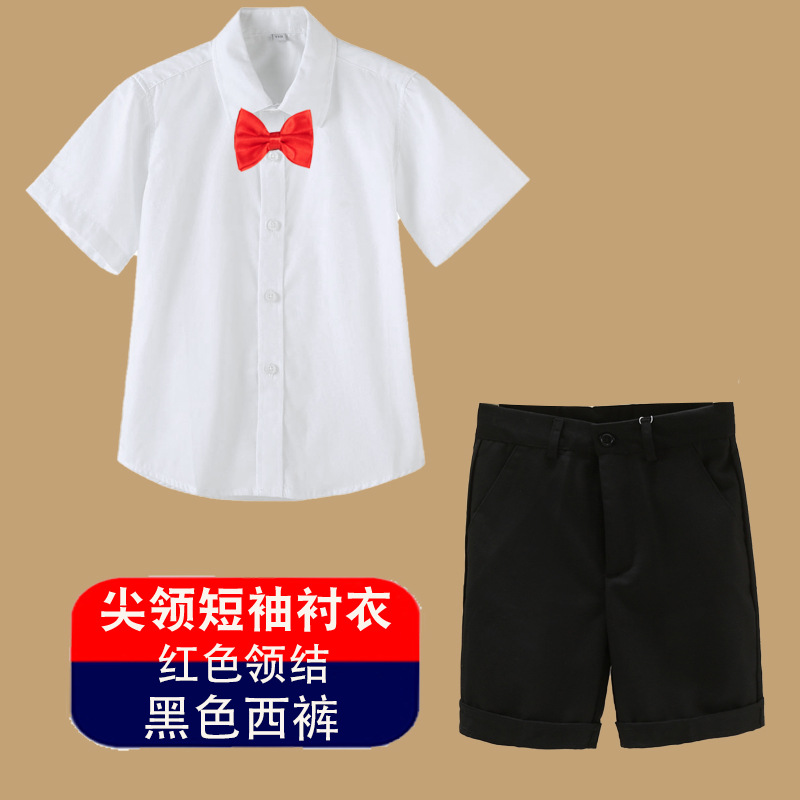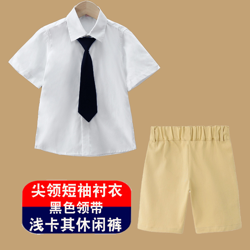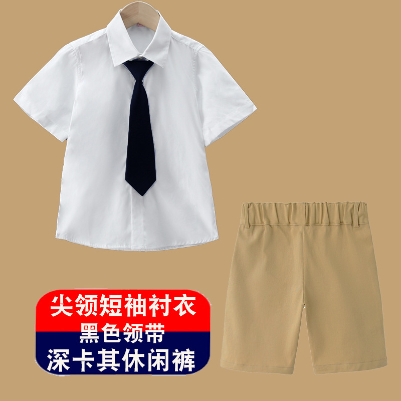 남아용 셔츠, 반팔, 아동용 라펠, 여름 교복, 학급 교복, 공연복, 아동용 흰색 셔츠, 캐주얼하고 활용도가 높은 얇은 스타일스토어 가기