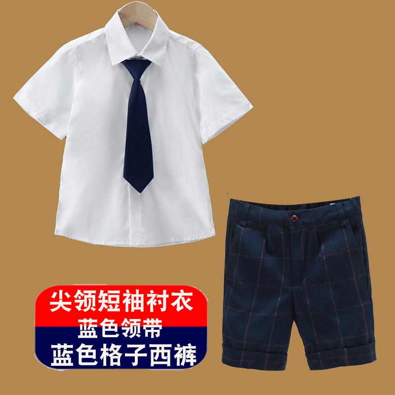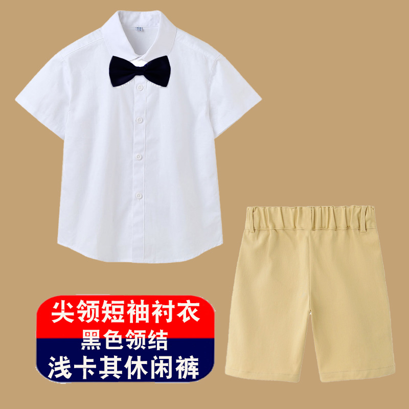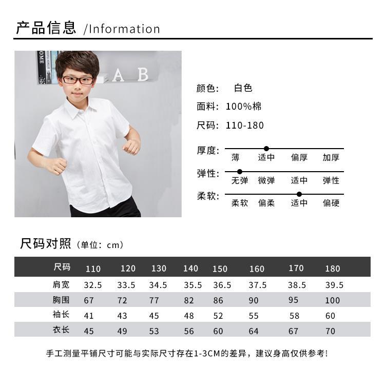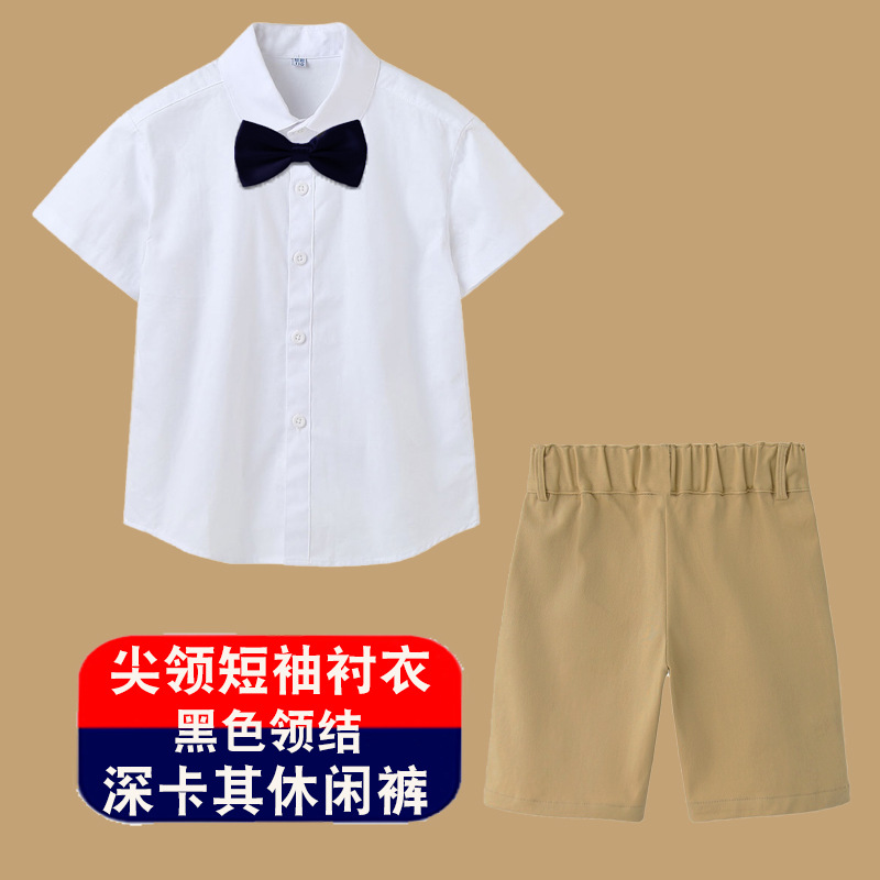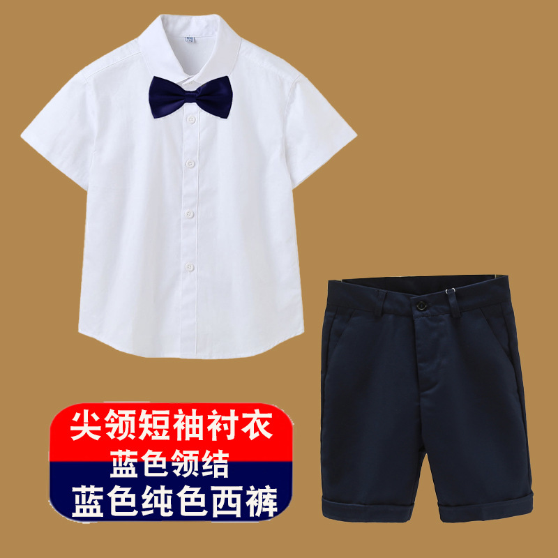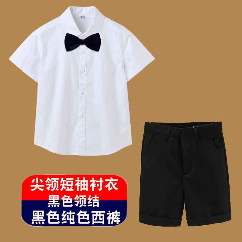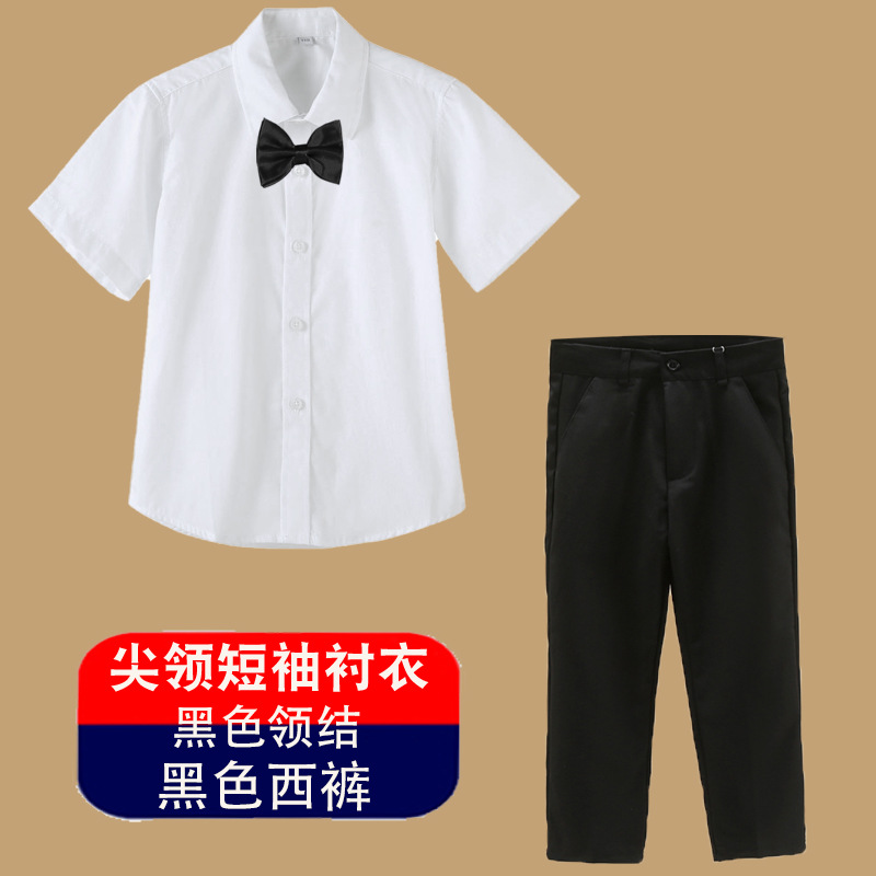 남아용 셔츠, 반팔, 아동용 라펠, 여름 교복, 학급 교복, 공연복, 아동용 흰색 셔츠, 캐주얼하고 활용도가 높은 얇은 스타일스토어 가기